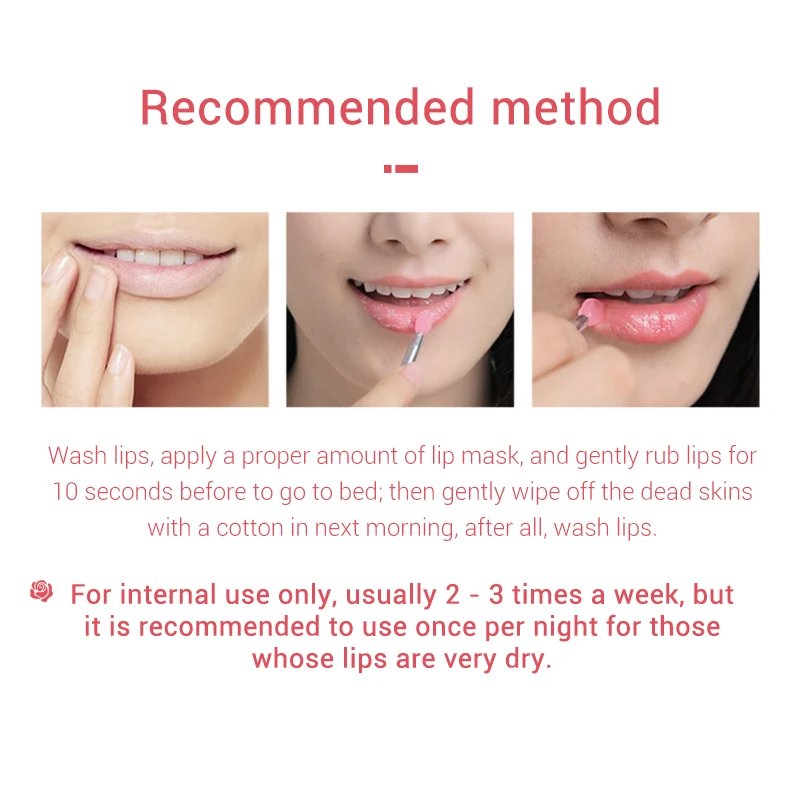 Только для внутреннего использования, обычно два-три раза в неделю, но рекомендуется для сухих губ один раз в ночь.