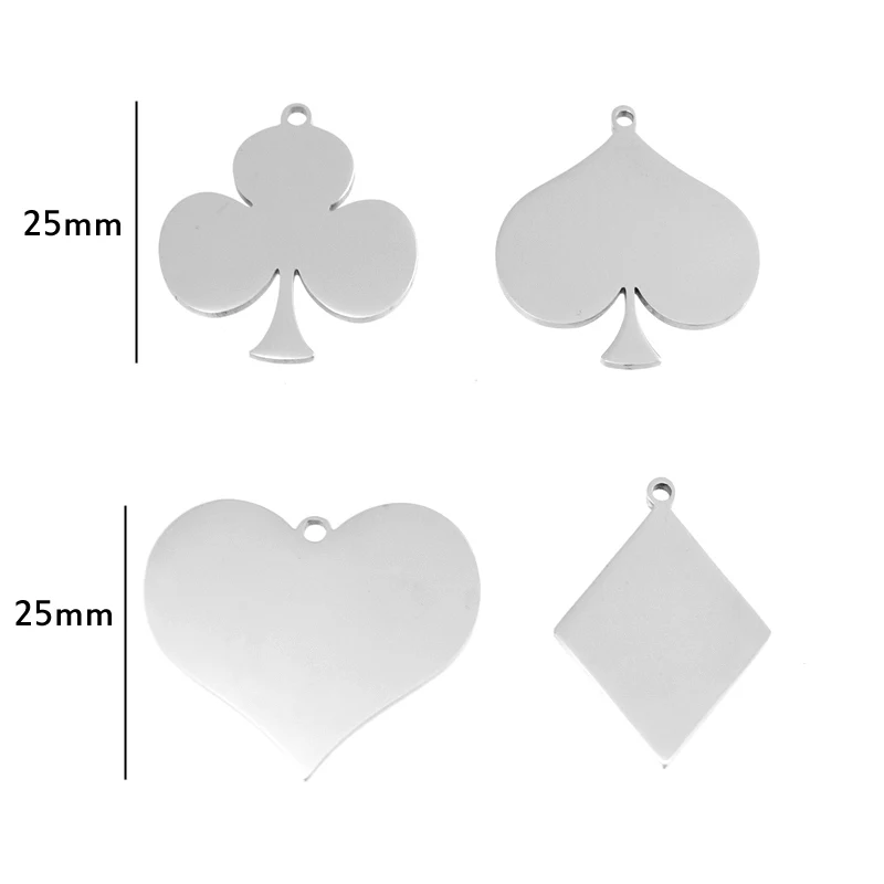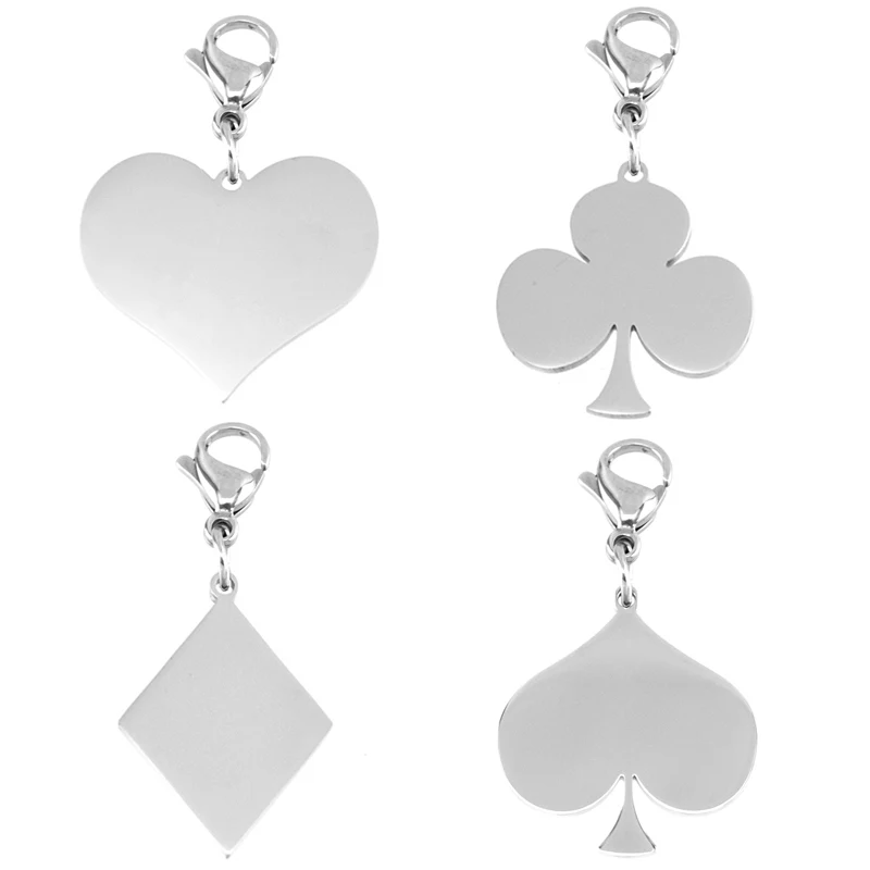 Застежка для покера, очаровательные игровые карты, клубы, сердца, лопатки, подвески для мужчин и женщин, подвески из зеркальной полированной нержавеющей стали