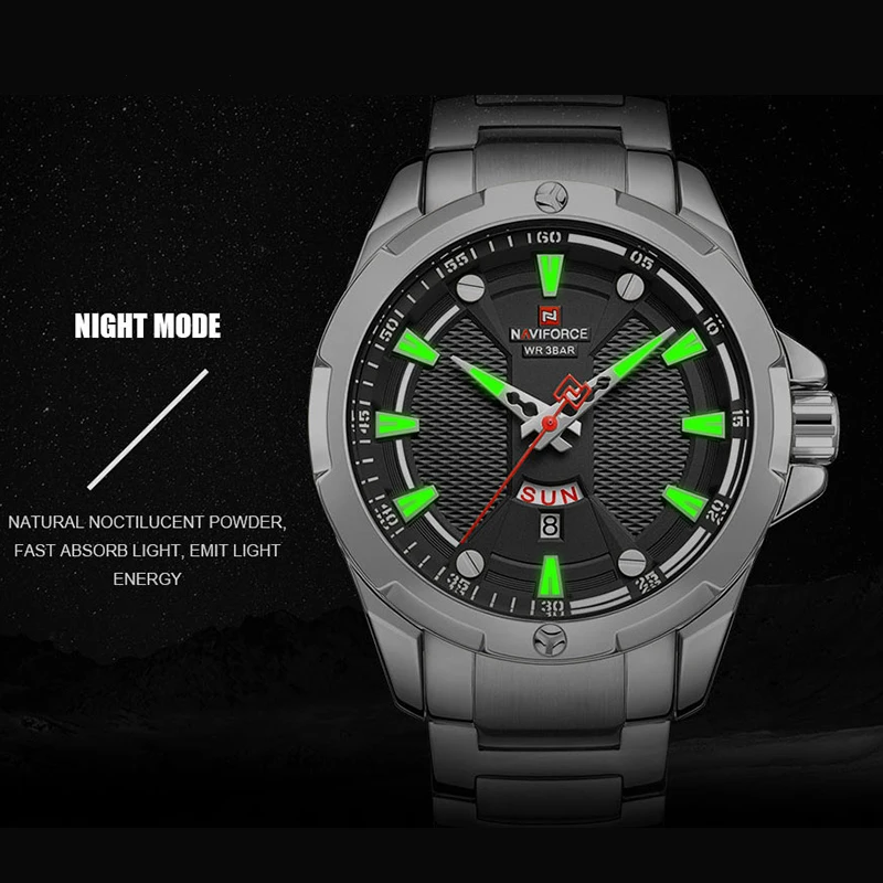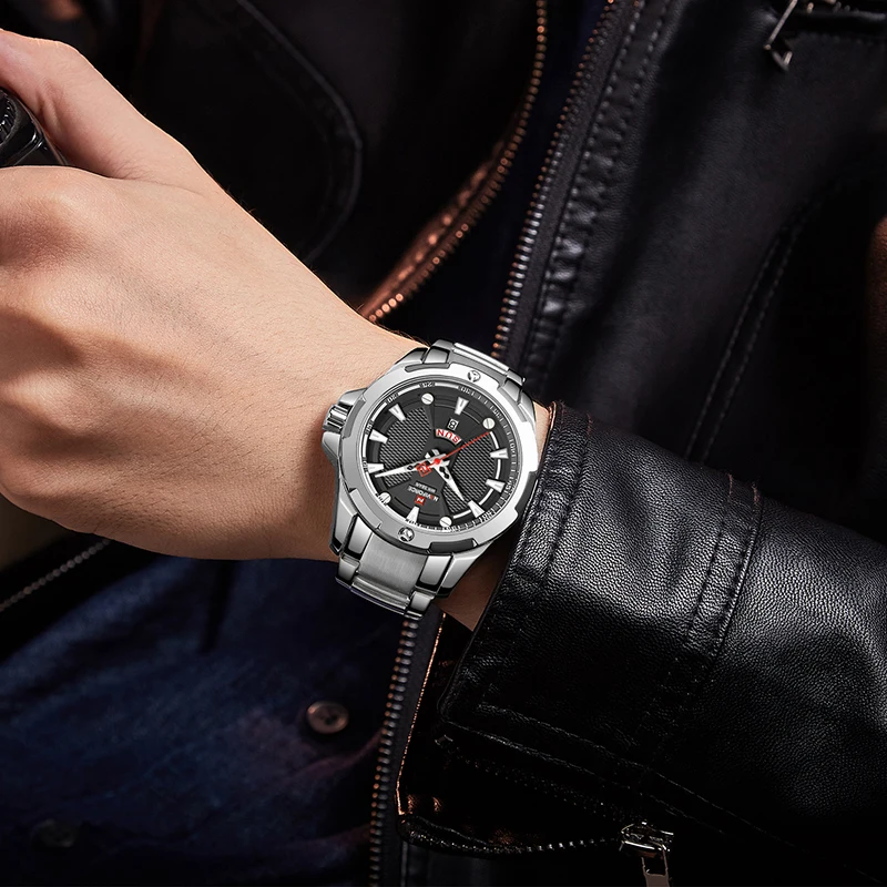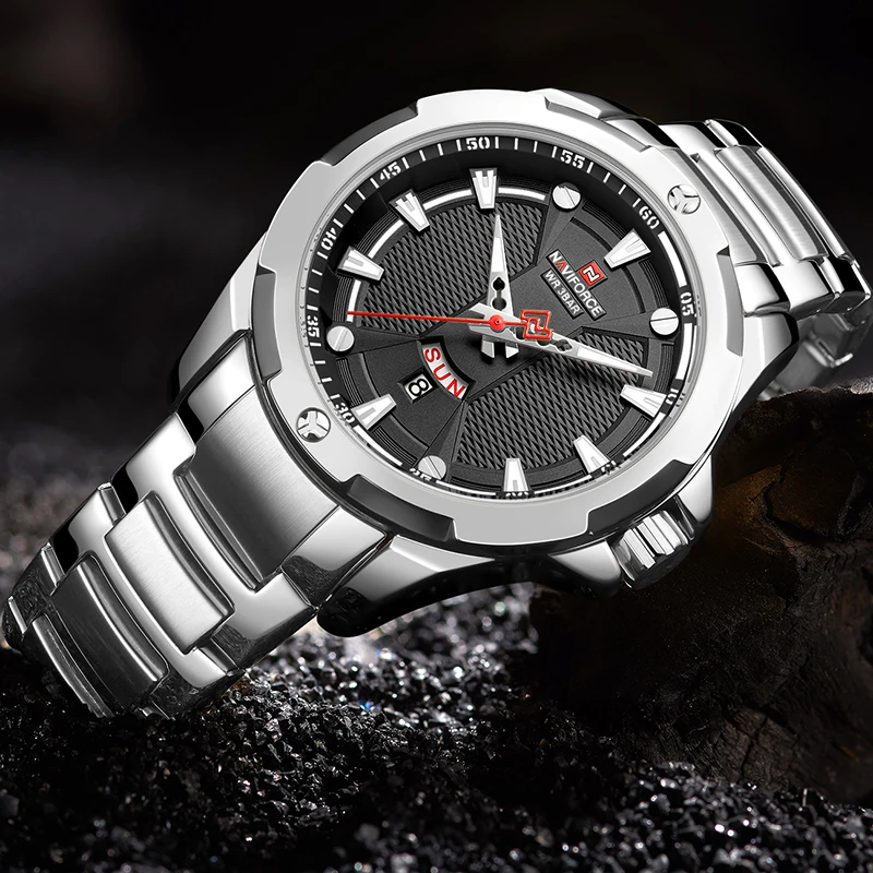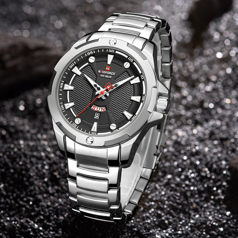 Часы наручные NAVIFROCE Мужские кварцевые, роскошные брендовые полностью стальные деловые водонепроницаемые
