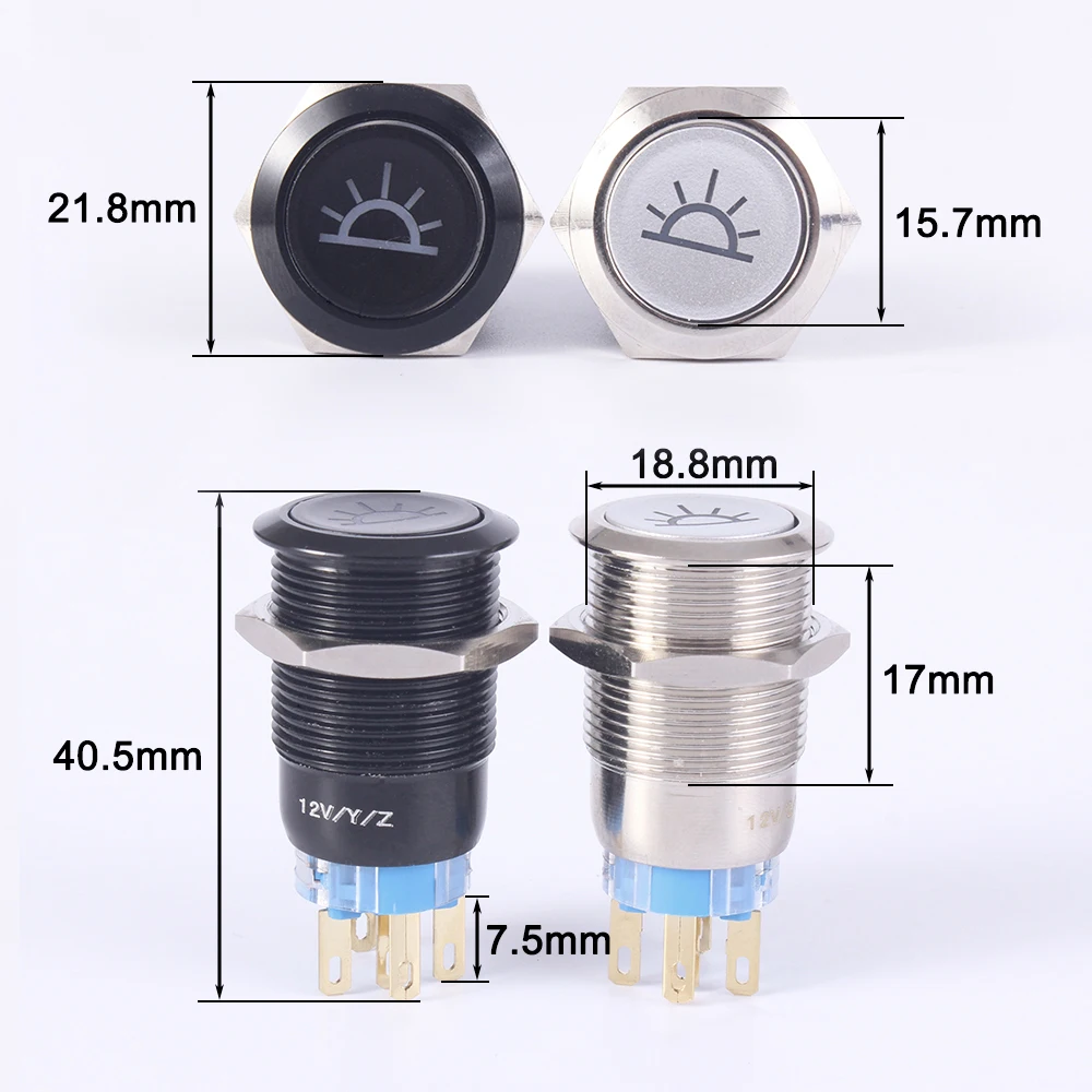 Страна: NL Color: Customize other icon Size: Momentary Silver Standard: LED White Voltage: 12V or leave voltage Доставка: Standard Shipping 26.10.2020