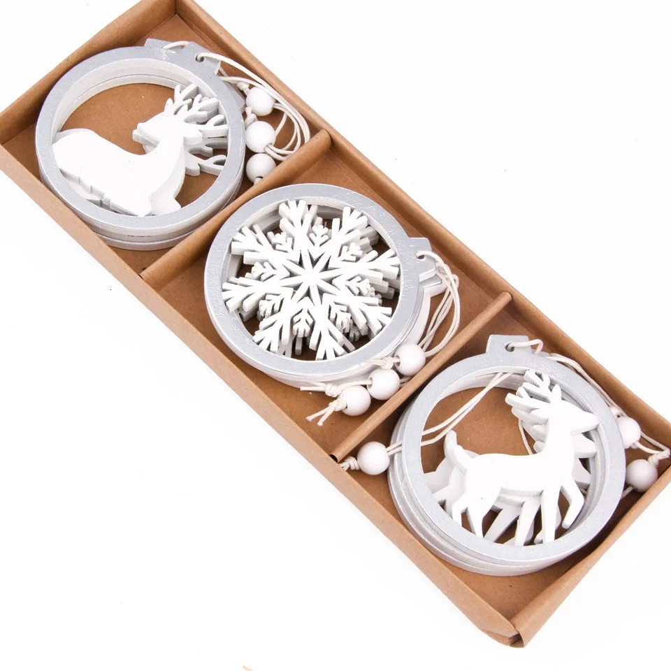 Деревянные Подвески в виде оленяснежинки, 3 шт.лот
