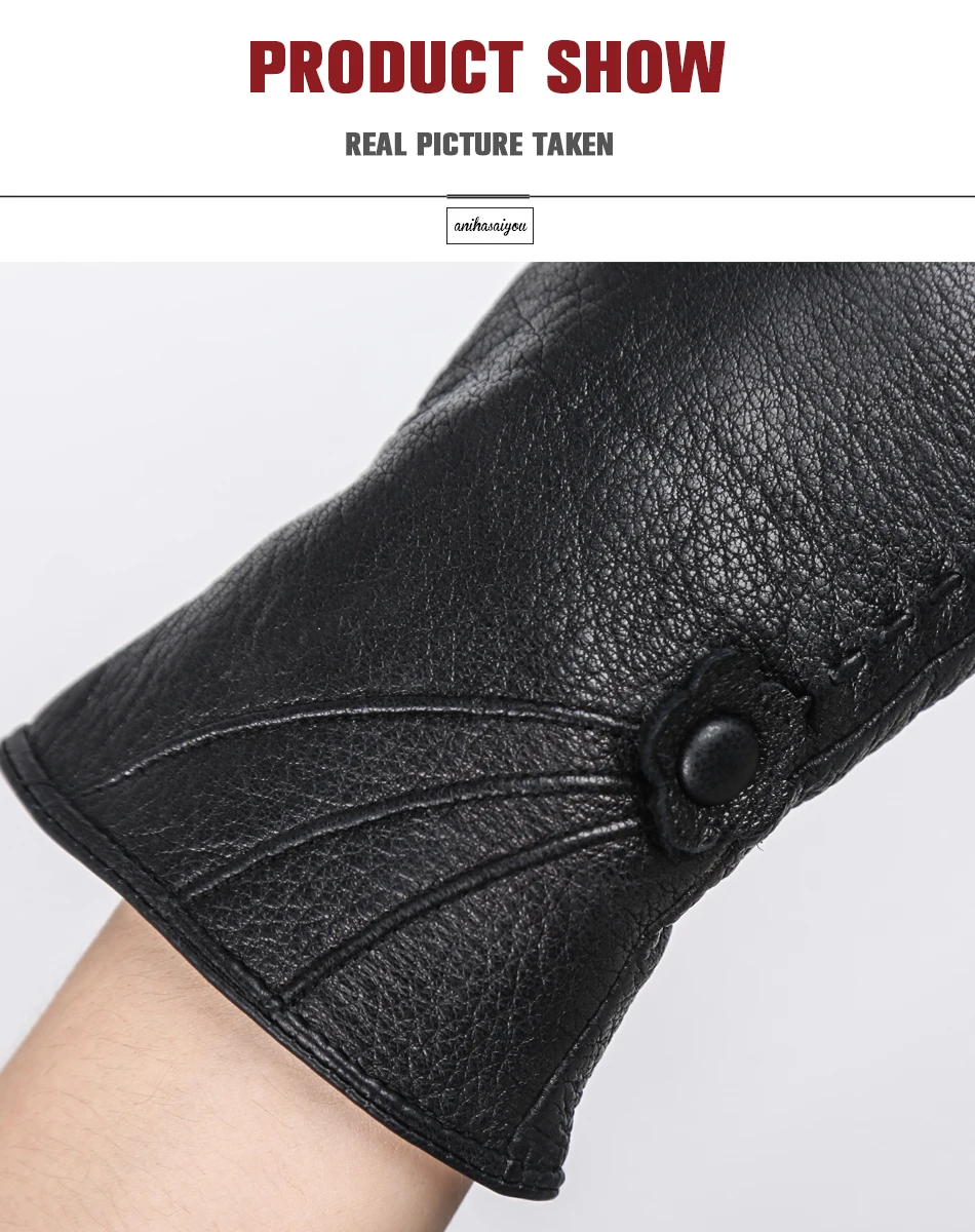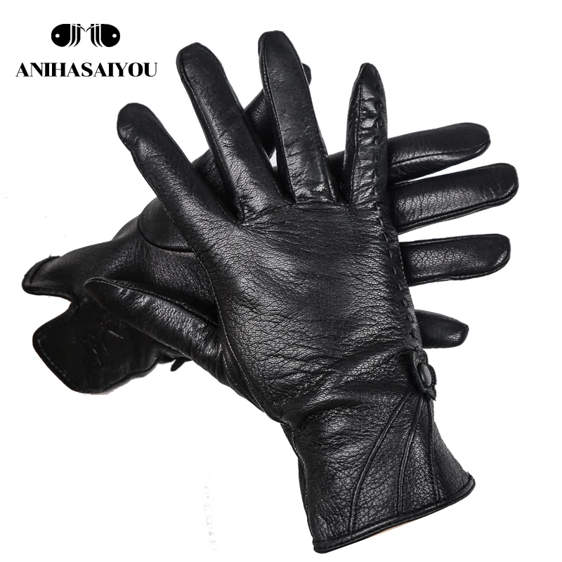 Женские перчатки из натуральной кожи с имитацией оленя, модные зимн...