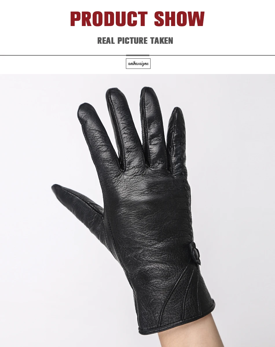 Новинка, женские зимние варежки с маленькими цветами, теплые женские кожаные перчатки, перчатки из натуральной овчины для женщин-8026