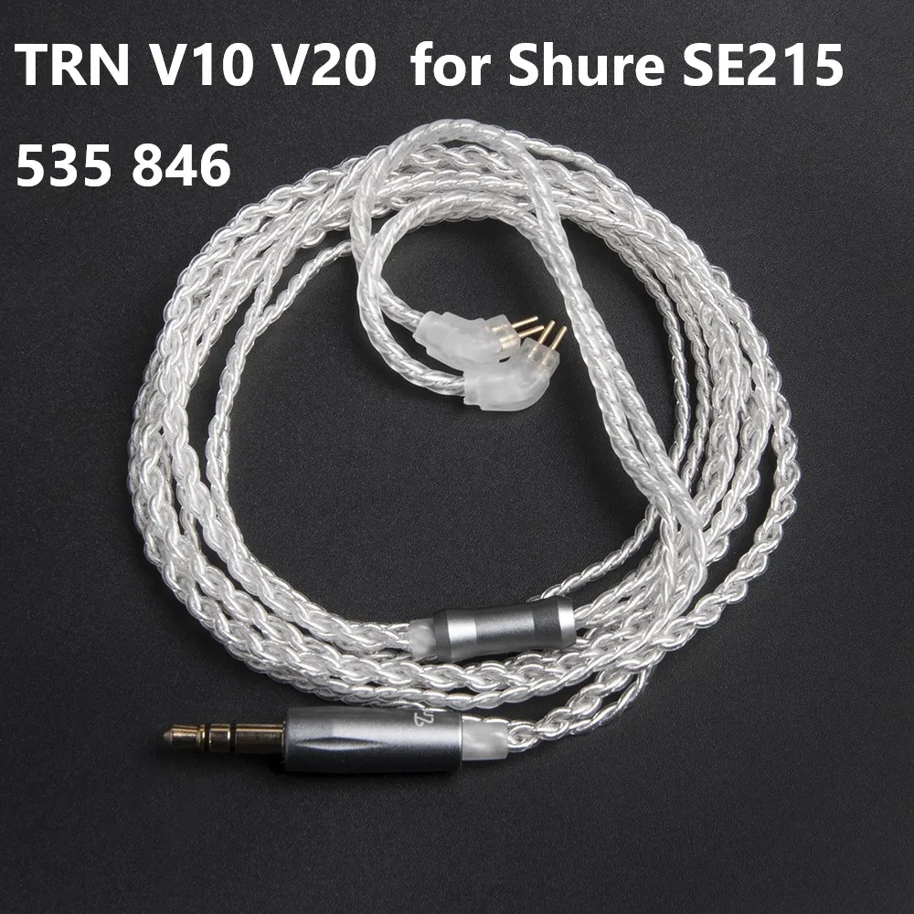 Высококачественный кабель для наушников TRN V10 V20 3,5 мм с серебряным покрытием 0,75 мм 0,78 мм MMCX съемный кабель для Shure SE215 535 846