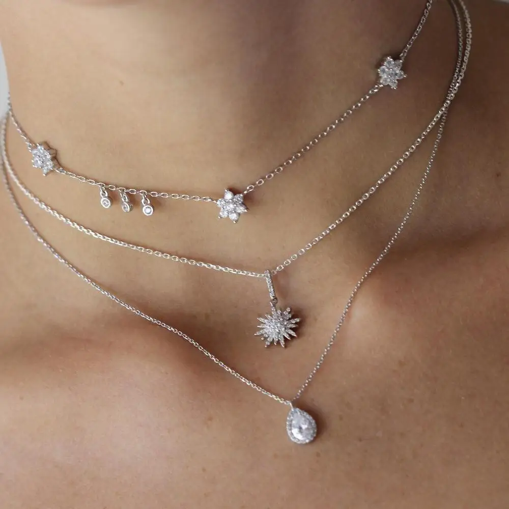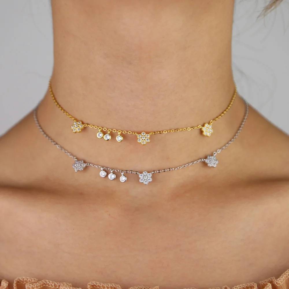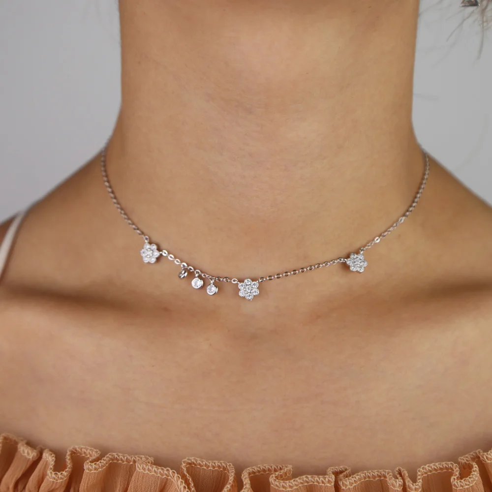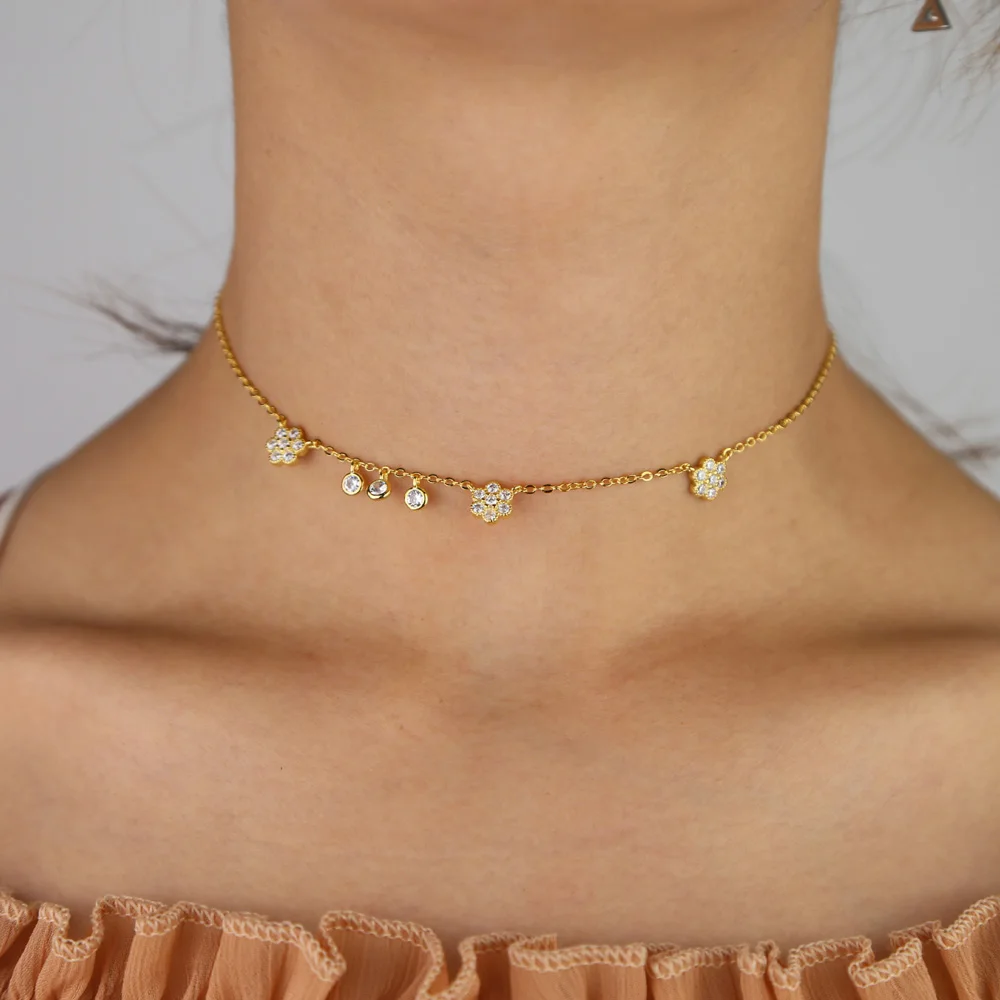 Весенние новые модные ювелирные изделия изящный cz милый цветок очарование колье цепочка ожерелье золотой серебряный цвет