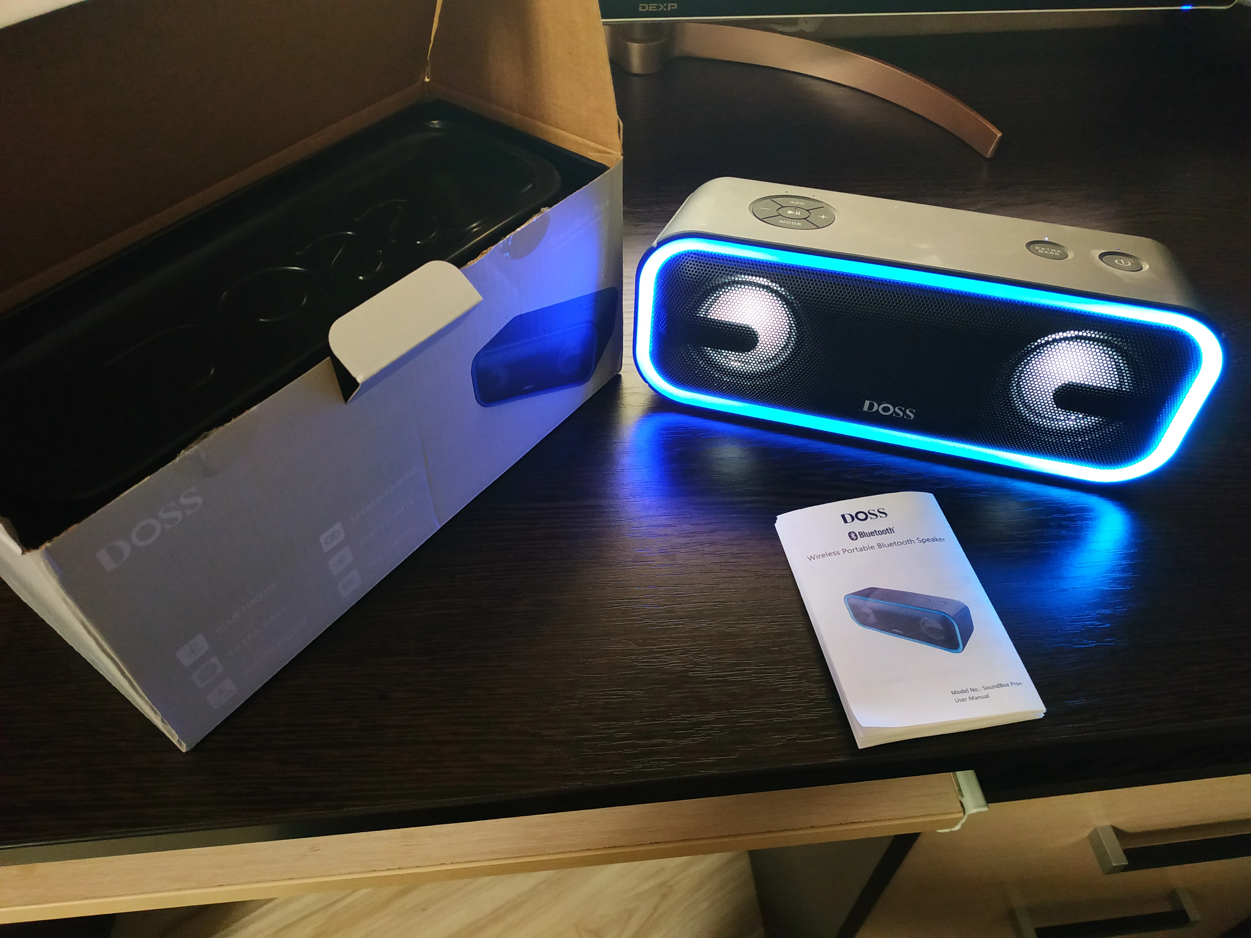 Беспроводная Bluetooth Колонка DOSS SoundBox Pro + TWS, 24 Вт, впечатляющий звук, глубокие басы, подсветка смешанных цветов, настоящий стереозвук