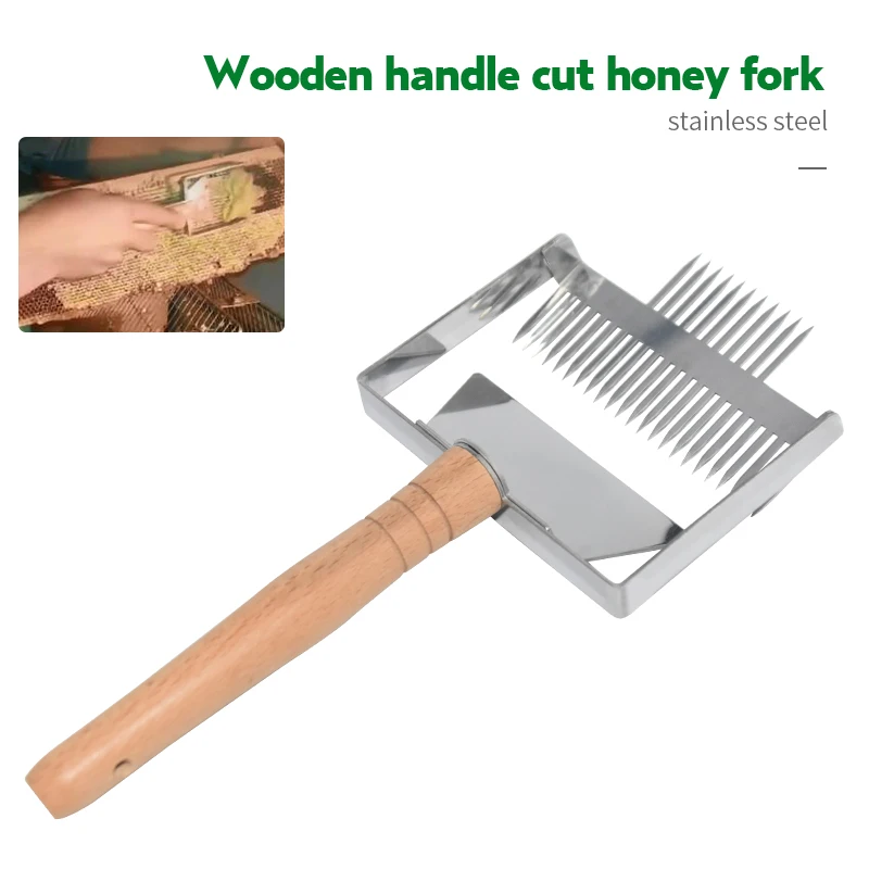 Многофункциональный двухигольный пчеловодческий инструмент из нержавеющей стали 304 и дерева, подходит для расчесывания меда, вилки для снятия колпачков