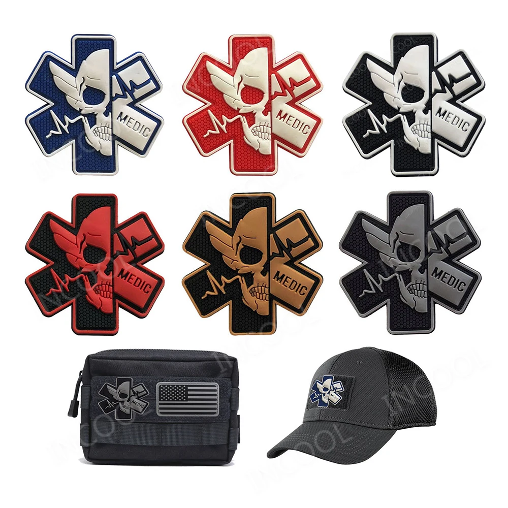 Медицинские нашивки с черепами фельдшера из ПВХ, военные нашивки 3D, военные декоративные нашивки, боевые резиновые медицинские Значки для кепок, рюкзаков