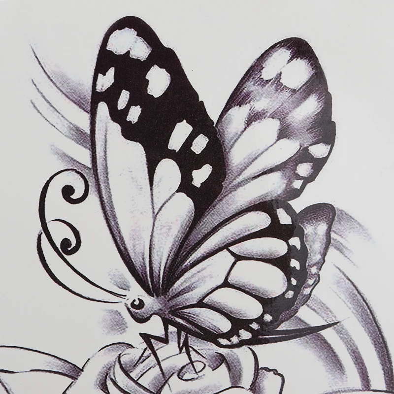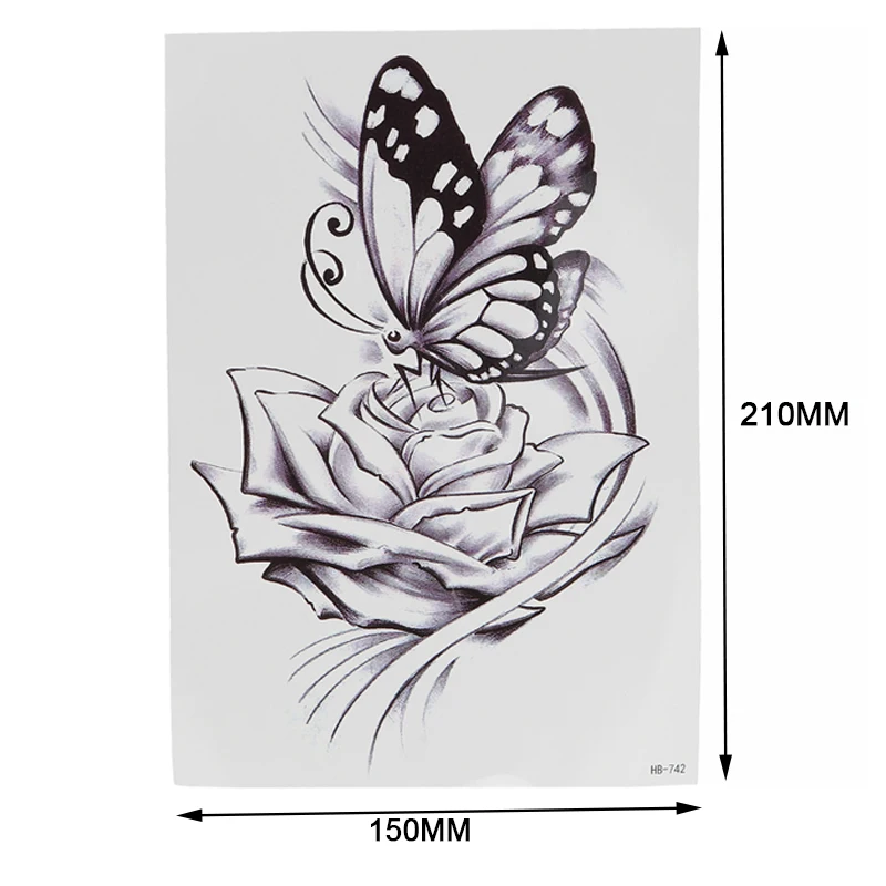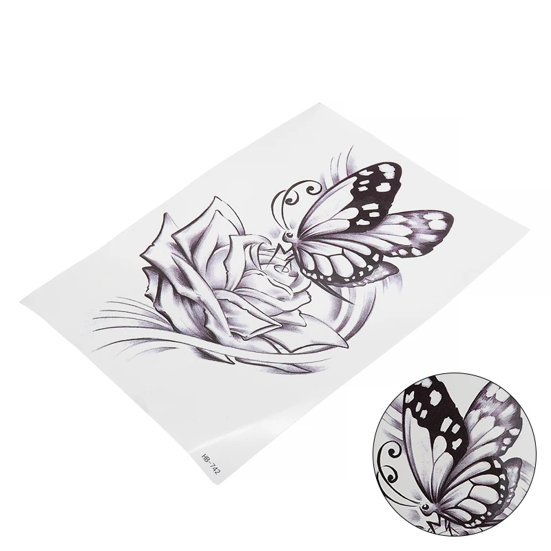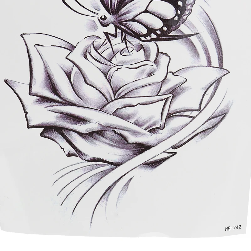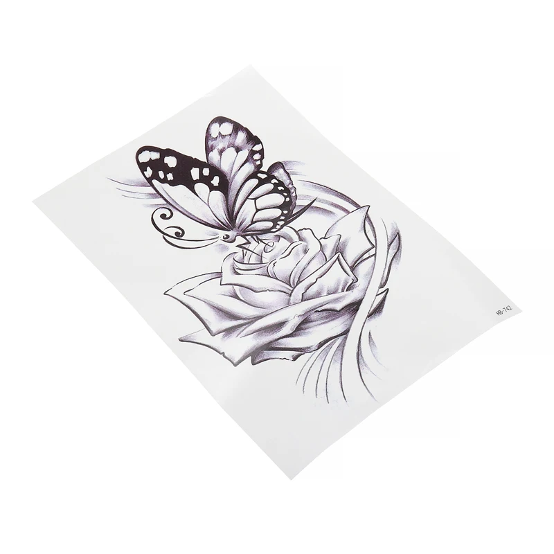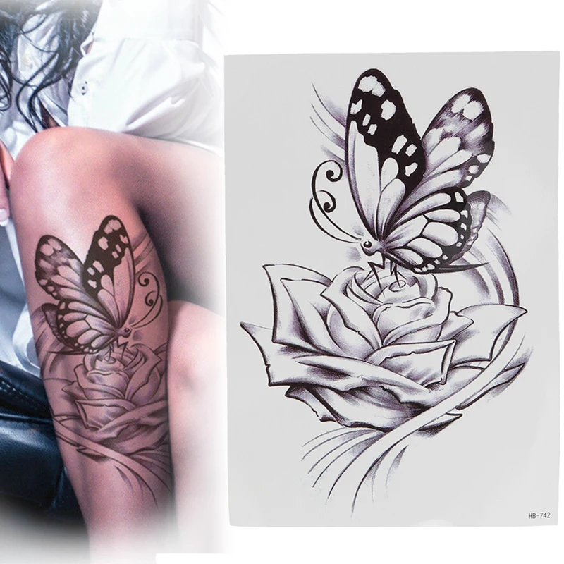 Женская Временная тату-наклейка, большая черная роза, Бабочка, боди-арт, водостойкая Временная тату, Женская тату-наклейка на руку