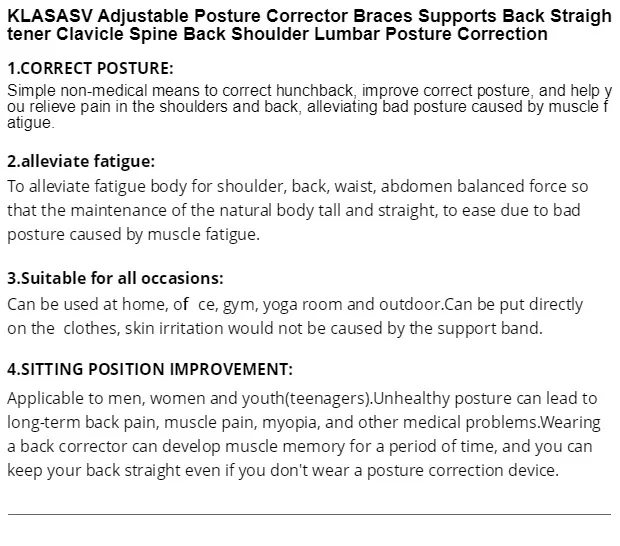 KLASASV Регулируемый Корректор осанки поддерживают раннюю ключицу позвоночника, спины, плеч, поясницы, коррекцию осанки