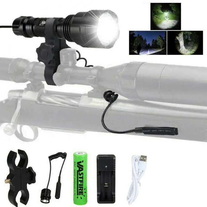 Фсветильник XM-L T6, 5000 люмен, тактический, светодиодный, белый, для охоты, с креплением для прицела, с пультом дистанционного управления, зарядным устройством USB 18650