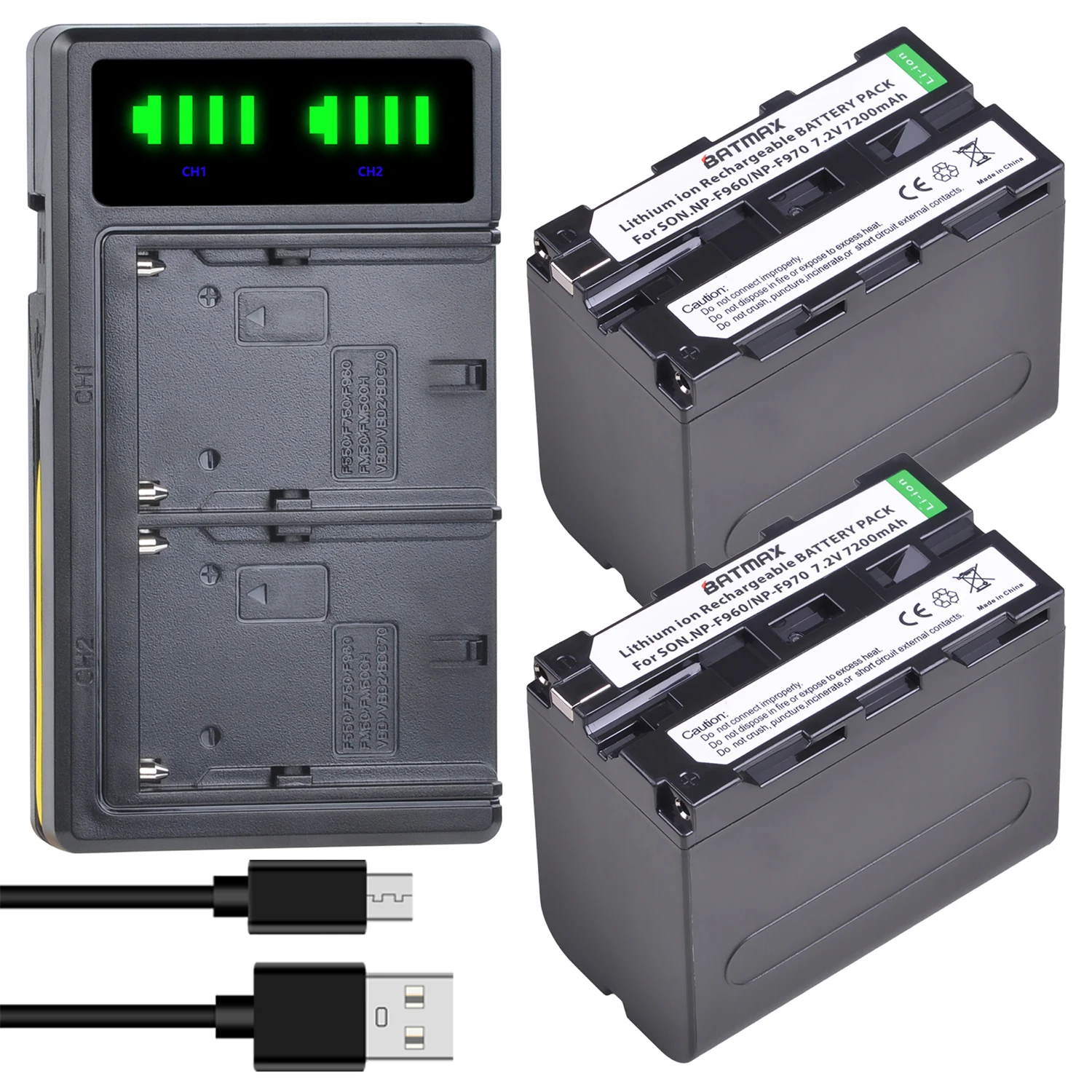 Batmax 2 шт NP-F970 NP-F960 NP F960 F970 батарея AKKU + LED USB двойное зарядное устройство для Sony PLM-100 CCD-TRV35 MVC-FD91 MC1500C L10
