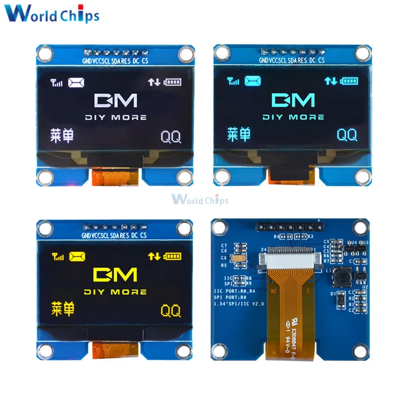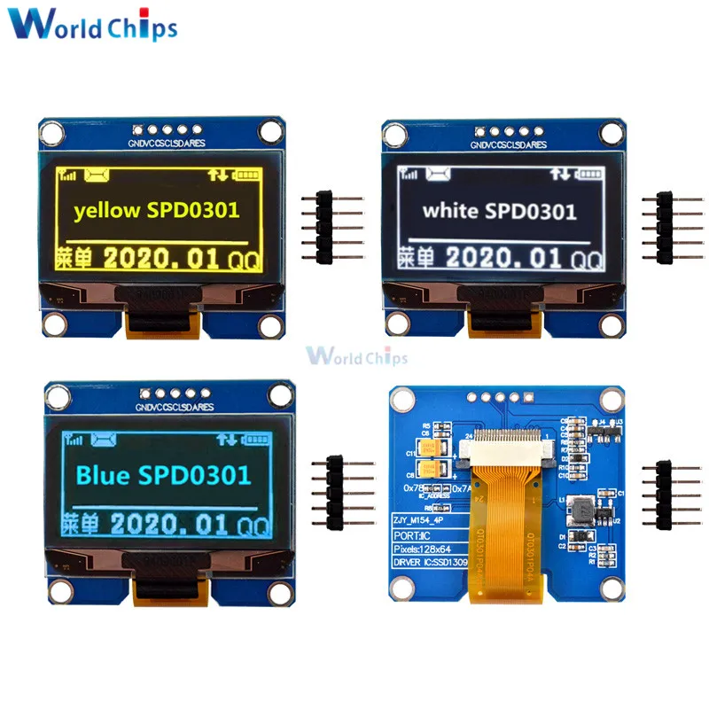 1,54 дюймов PM 5PIN 7PIN Белый Синий Желтый OLED модуль IIC I2C интерфейс 128x64 экран дисплея SSD1309 SPD0301 Драйвер IC 3,3-5 В