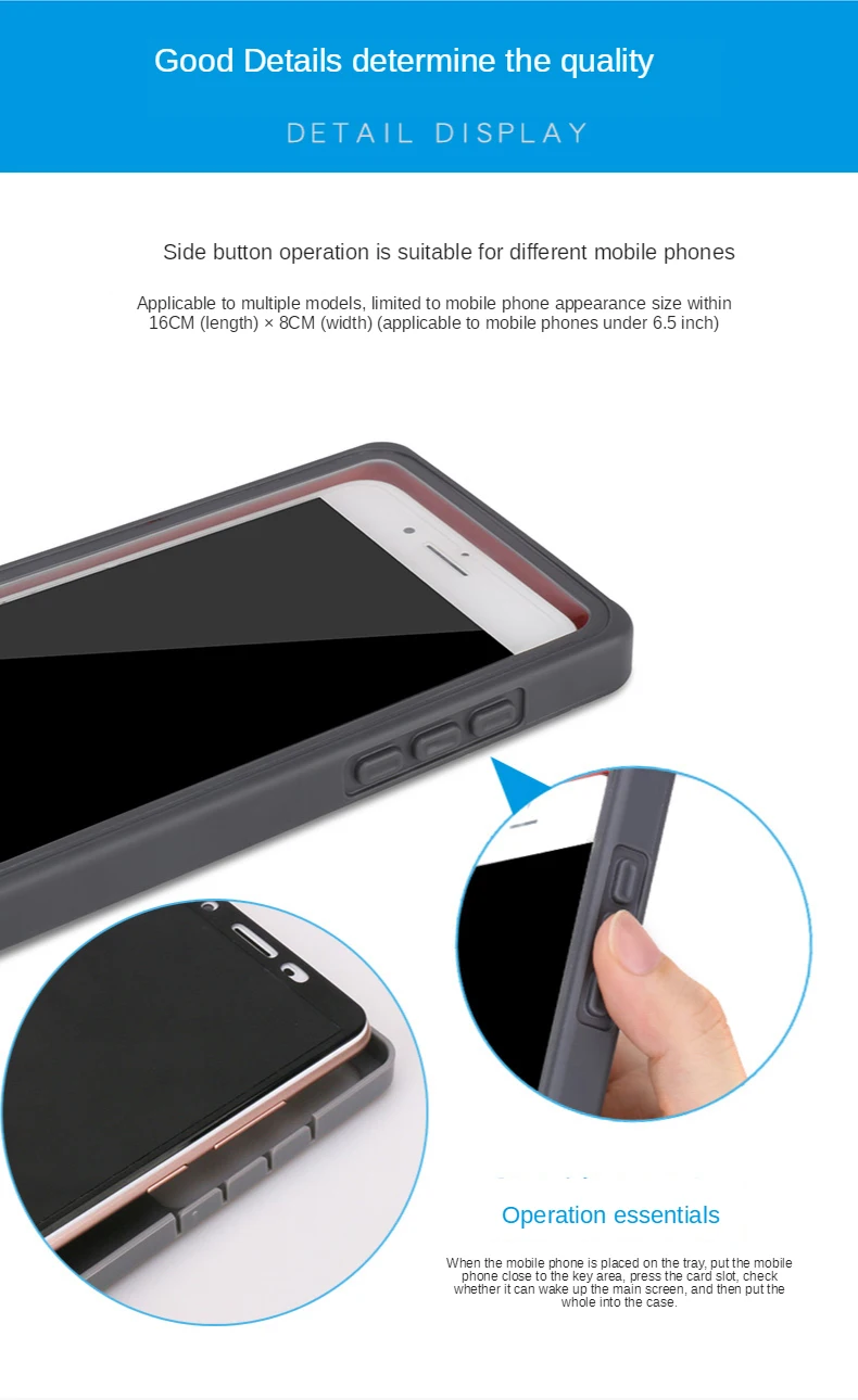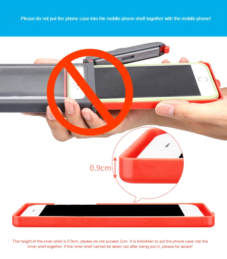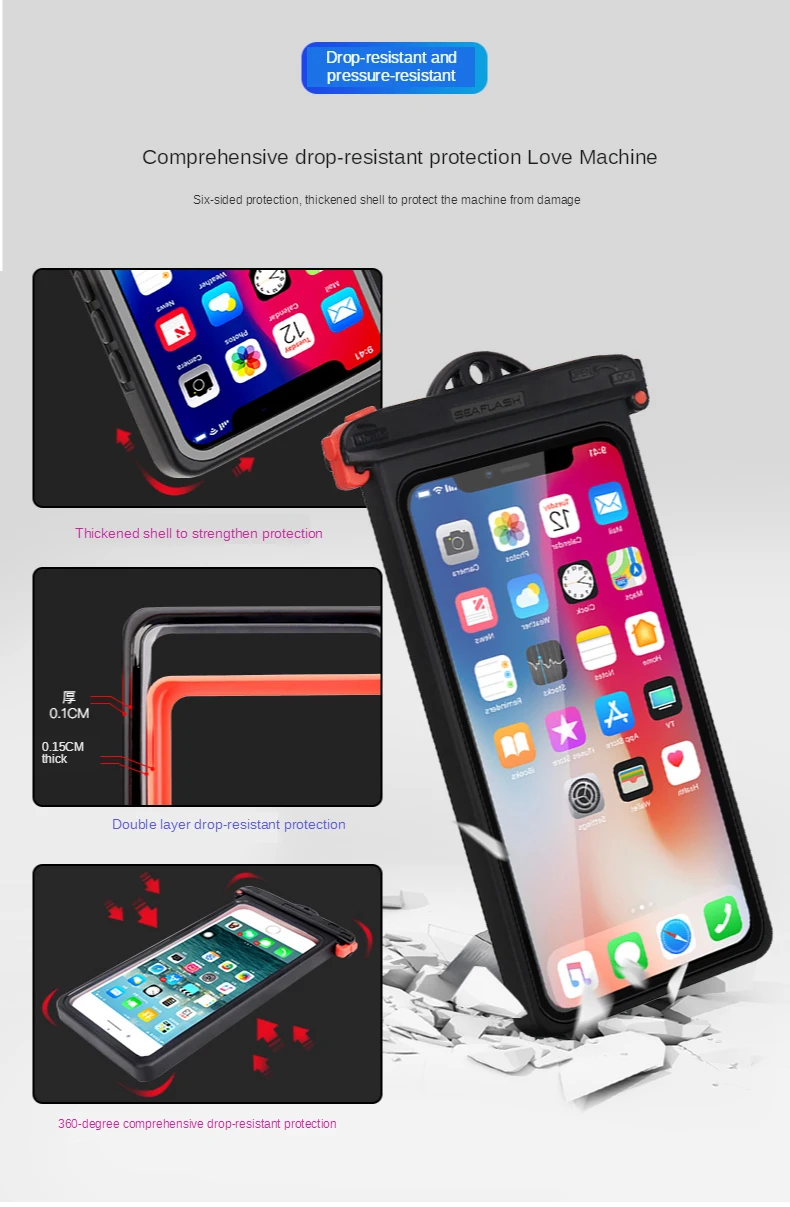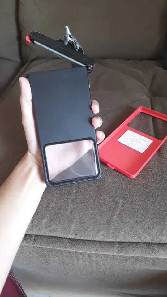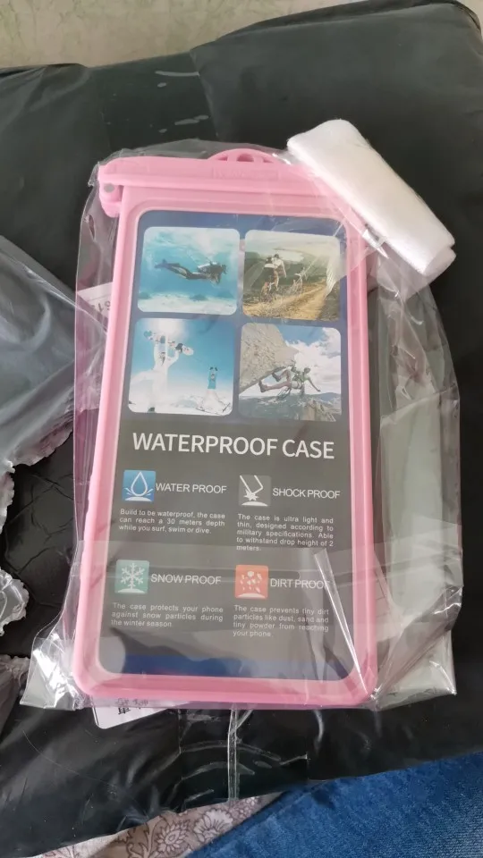 Мягкий, герметичный чехол. Сенсорная панель пропускает касания к телефону, сам кейс герметичен и удобен. Механические кнопки часто не совпадают с предусмотренными прорезями, так что к ним надо привыкать или подкладывать упоры. Poco X3 помещается в чехол, MiMax2 - не входит. Глубину погружения не испытывал, но струю воды и погружение на 30 см выдерживает легко. Сможет выдержать падение телефона на ребро, хотя собачка, запирающая чехол, была под защитой "пенки". А вот ронять телефон стеклом вниз.. вряд ли хорошая идея.