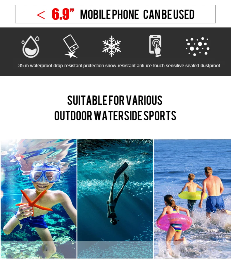 Водонепроницаемый чехол для телефона с защитой от падения, чехол для телефона для плавания и дайвинга, держатель для подводного телефона с защитой от снега, держатель для телефона с сенсорным экраном ниже 6,9 дюйма