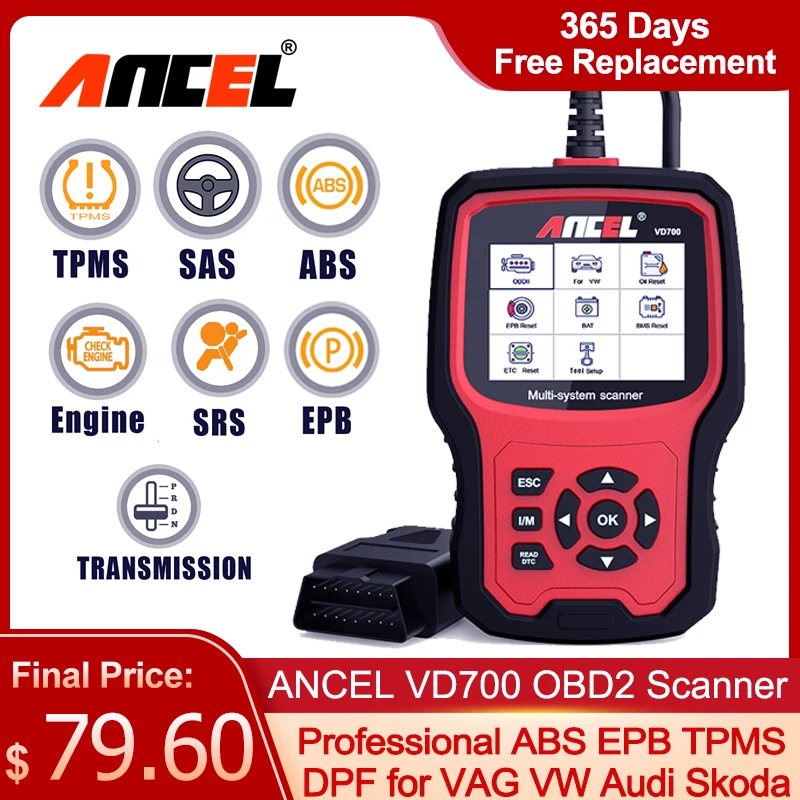 Автомобильный сканер ANCEL VD700 для всех систем OBD2 для VAG VW Audi TPMS масла ABS EPB DPF TPS сброс подушки безопасности OBD 2 Автомобильные диагностические инструменты