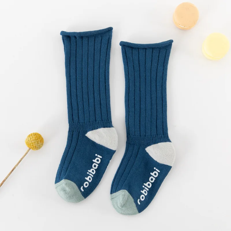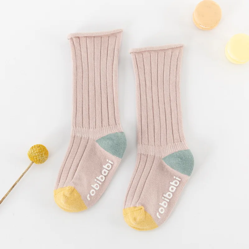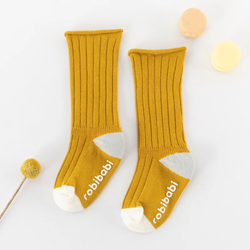 Хлопковые гольфы для маленьких мальчиков и девочек, детские Нескользящие носки в полоску с двумя иглами для малышей, длинные носки для девочек