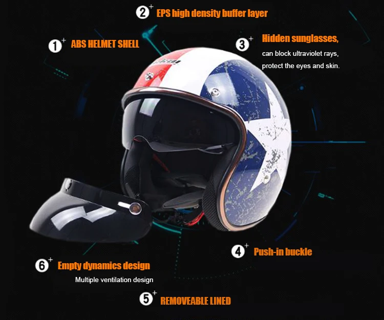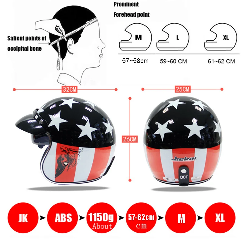 Особенности:-Не только для безопасной езды, также можно использовать для сохранения тепла зимой-Сертификат DOT standard, гарантия безопасности-Шестисегментная Пряжка, выдерживает максимум 500 кг тяговое усилие, гораздо безопаснее-Съемная подкладка, Абсорбирующая, дышащая и удобная в чистке-Корпус из АБС-пластика, высокая твердость и хорошая производительность для предотвращения столкновений-Высококачественный поликарбонатный козырек, эффективно предотвращает ультрафиолетовый светильник и ослепляет-Утолщение EPS буферный слой, эффективно облегчают боль в чехол несчастных случаев-Элегантный и нейтральный внешний вид, подходит как для мужчин, так и для женщин Пол: унисексМатериал шлема: ABS + PCСтиль шлема: с открытым лицомРазмер: L, XL