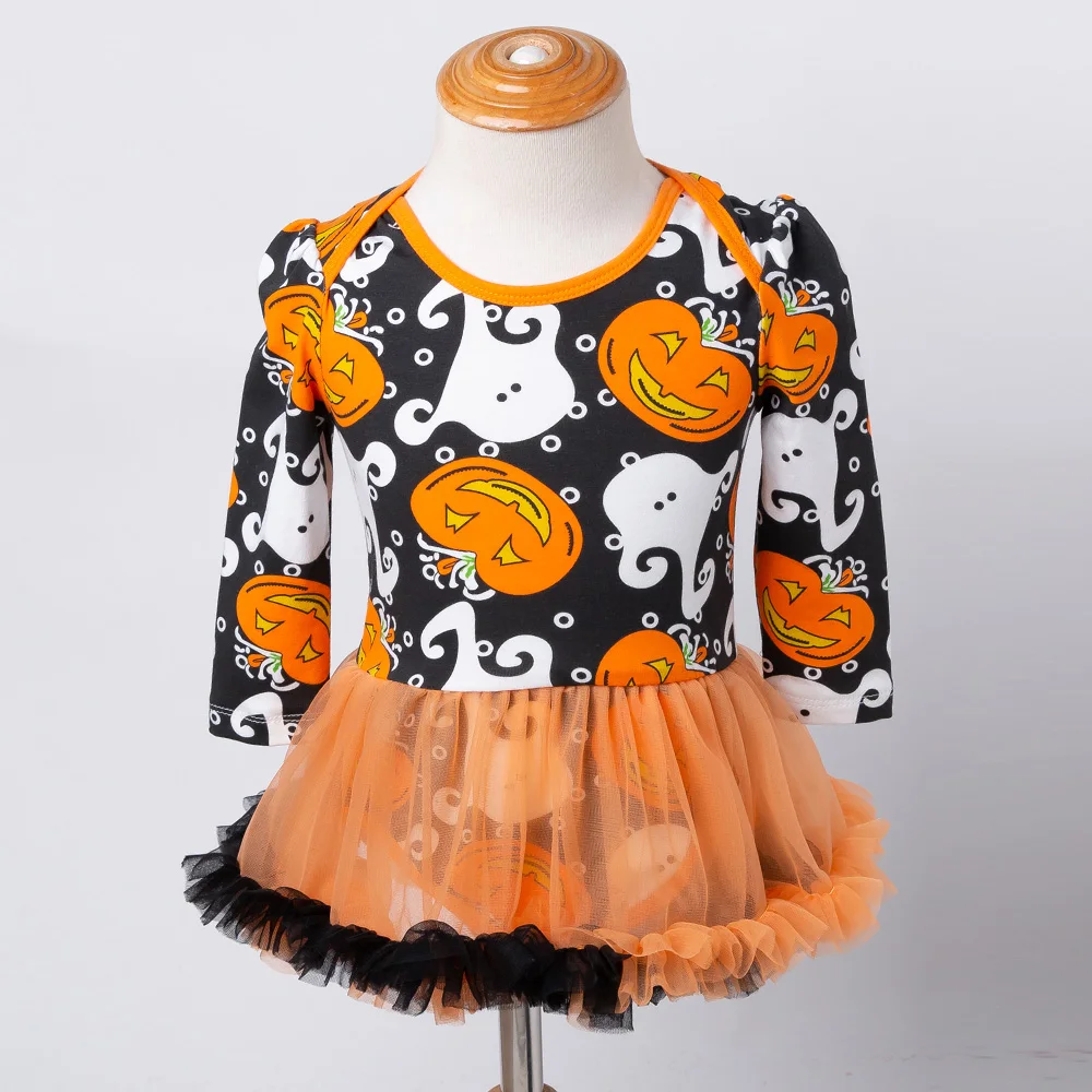 Платье для Хэллоуина, Детские вечерние платья с длинным рукавом для девочек, подарки для новорожденных, наборы повязок на голову, одежда из хлопка