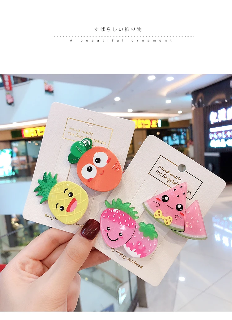 Лидер продаж 2019, детские новые заколки для волос для девочек, блестящие милые безопасные заколки с фруктами, зажимы для BB, подарки для маленьких девочек, детские аксессуары для волос