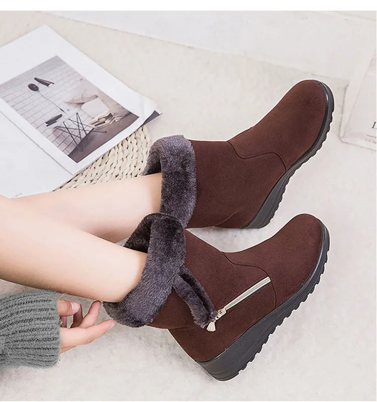 Зимние ботинки размера плюс; Женская теплая плюшевая обувь; Зимние женские ботинки; Женские зимние ботинки на молнии; Женская обувь; Zapatos De Mujer