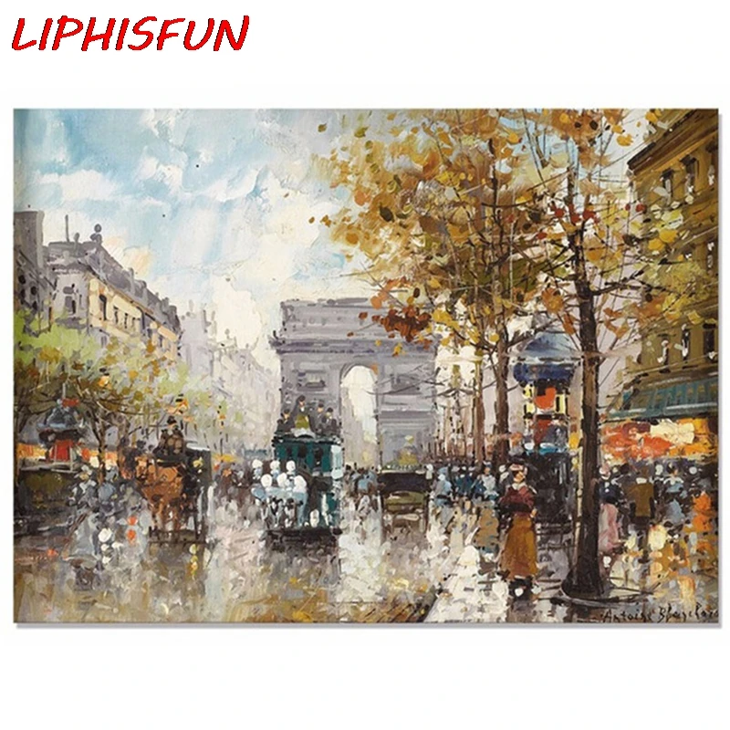 LIPHISFUN полная дрель алмазная живопись пейзаж смолы квадратныйкруглый ручной работы вышивка крестиком домашний декор городской пейзаж