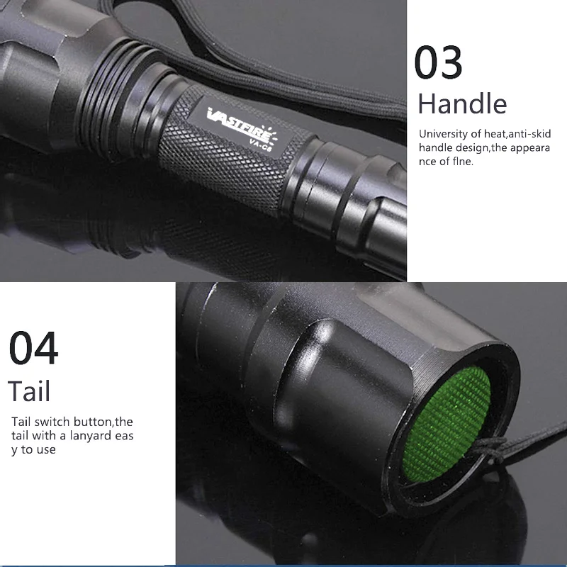 Вссветильник шка для охотничьего пистолета VASTFIRE C8, тактическая, 4000LMS, белая светодиодная ламсветильник для оружия, крепление на рейку для винтовки, переключатель давления, зарядное устройство 18650