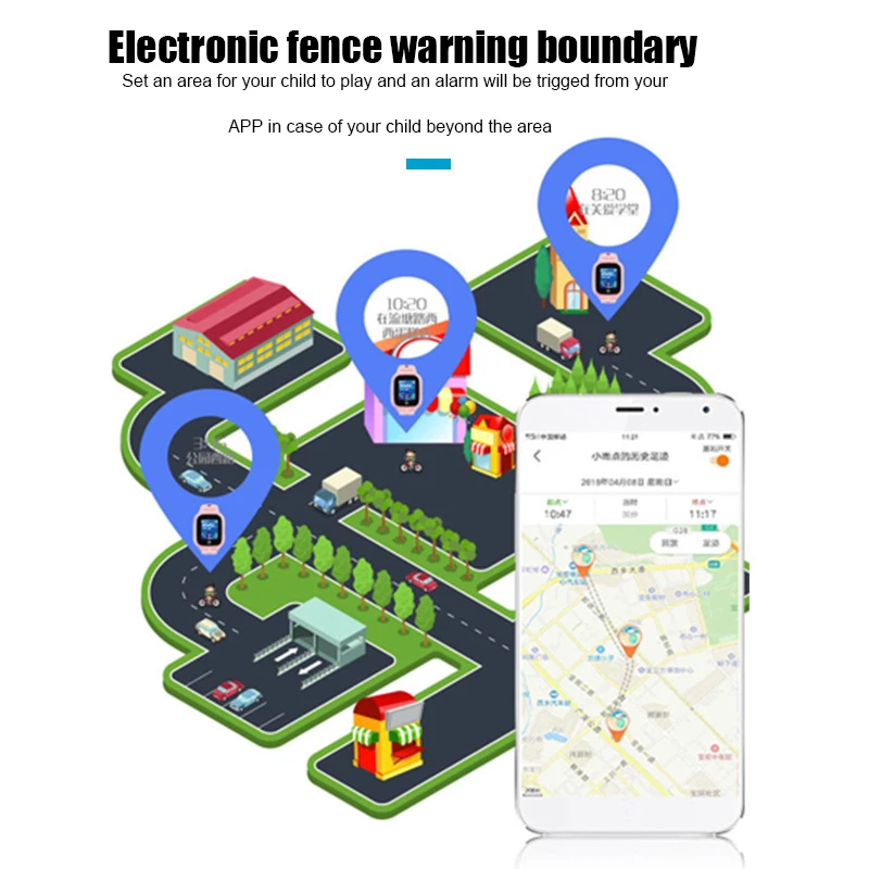 Зона безопасности- Держите вас в курсе входа вашего ребенка и выхода из зоны безопасности. История трека- Легко узнать, куда зашел ваш ребенок.