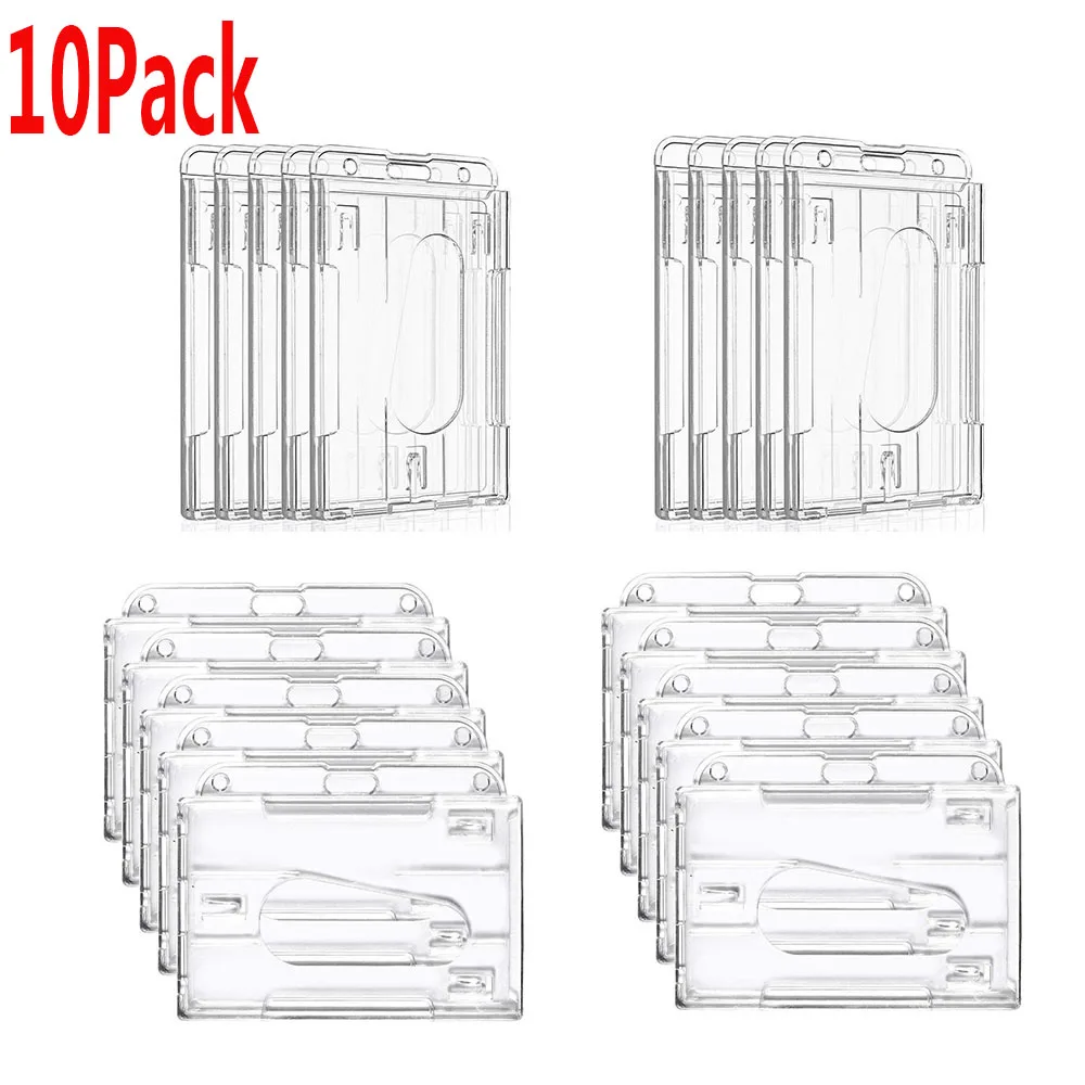 Сверхпрочный 2-сторонний держатель для удостоверения личности, 10 упаковок, жесткий пластиковый горизонтальный и вертикальный прозрачный держатель с отделениями для большого пальца 2-3 ID держатель для карт