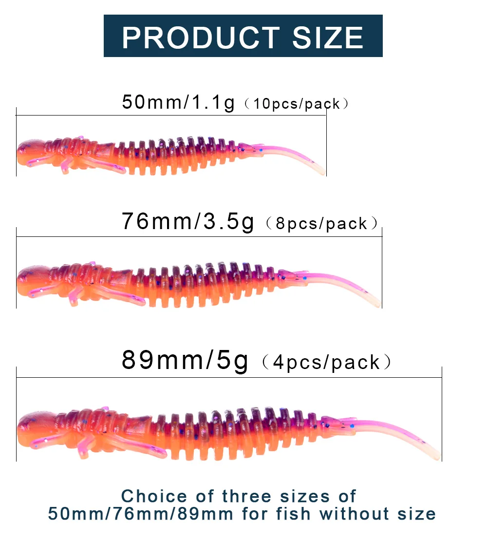 Мягкая приманка FTK, личинка 50 мм76 мм89 мм, мягкая рыболовная приманка, мягкие силиконовые приманки, креветки, снасти для ловли окуня