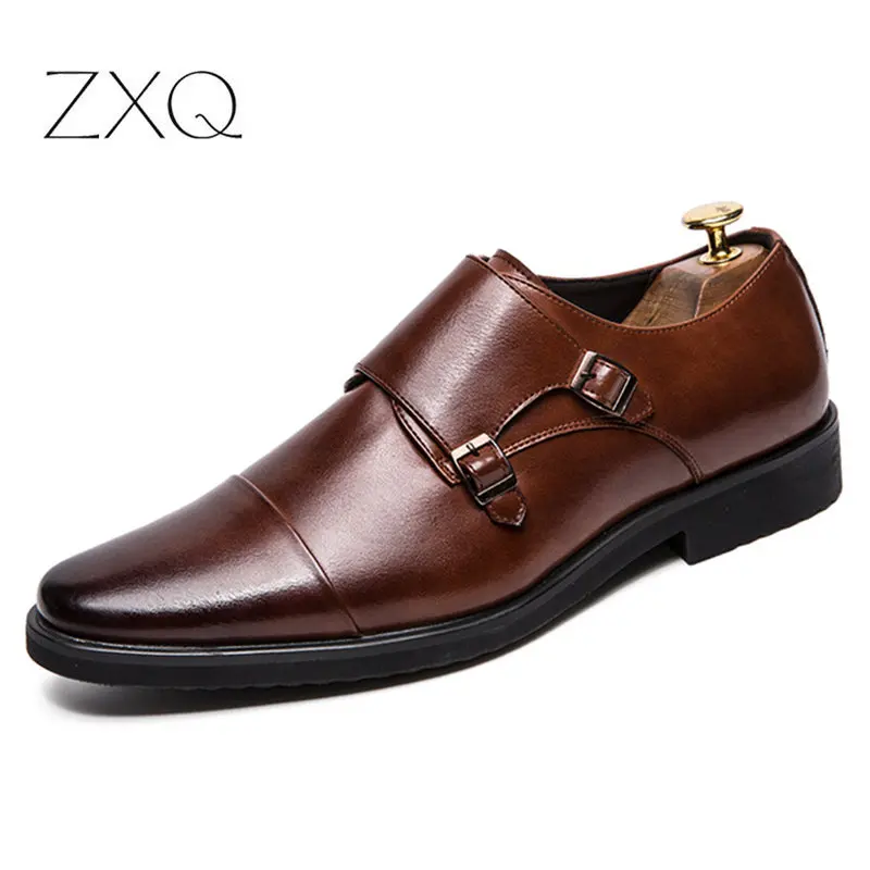 Мужские классические туфли из кожи Оксфорд, двойной монах, заостренный носок, удобные повседневные Лоферы градиентного цвета
