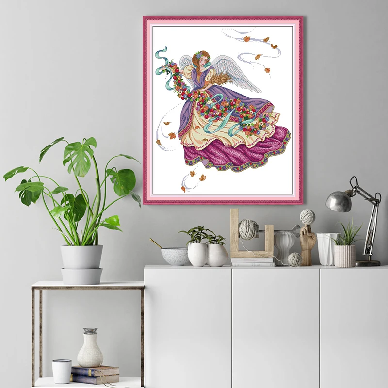 Рукоделие, Фиолетовый Ангел напечатанный на холсте 14CT 11CT схема вышивки крестом DIY Ручная работа ремесла украшение дома