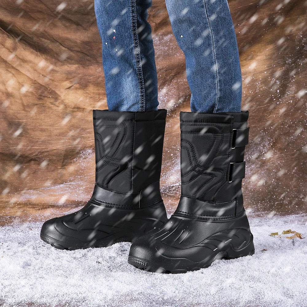 Мужские теплые ботинки MARSON, черные Утепленные ботинки с хлопковым плюшем, Нескользящие уличные удобные повседневные ботинки с ремешком с пряжкой для снега,