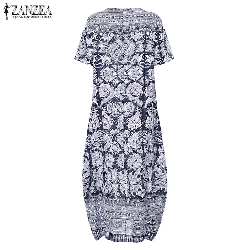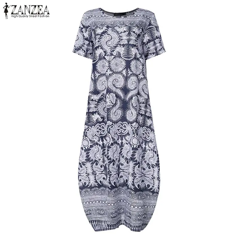 Платье ZANZEA 2022 женское Винтажное с принтом, сарафан, кафтан с коротким рукавом, с цветочным принтом, летнее повседневное мешковатое вечернее платье