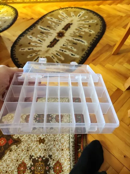 Заказ пришел за 2 недели. Коробка деформировалась. В закрытом виде остается щель 4мм(на фото) между крышкой и внутренними перегородками. Любые бусины меньше 4мм выпадают из ячеек и перемешиваются между собой, бисер и паетки невозможно хранить, вся фурнитура (колечки, застежки, пины) тоже перемешиваются. Сами перегородки у меня тоже не плотно прилегают, остается щель от 2х до 3х мм. Я вышиваю брошки, для моих целей не подойдет. Хранить можно что-то крупное. Может кому повезёт лучше. Продавец всю сумму не вернул и возврат бесплатный не работает, замену без брака не отправил, компенсировал половину. Хорошо что 1 заказала у него для проверки, хотела таких 8 штук брать. Буду искать другого продавца.