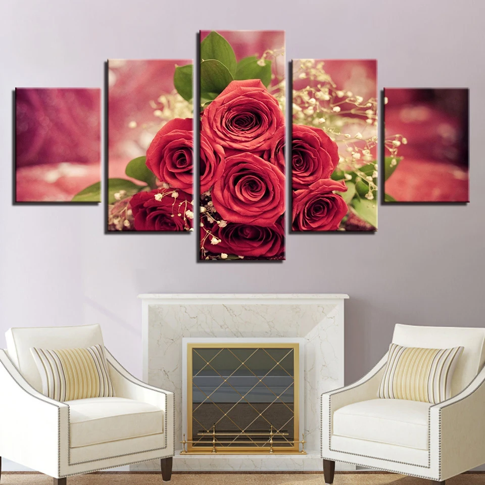 HD Картина на холсте для гостиной, Настенный декор, 5 шт., романтич...