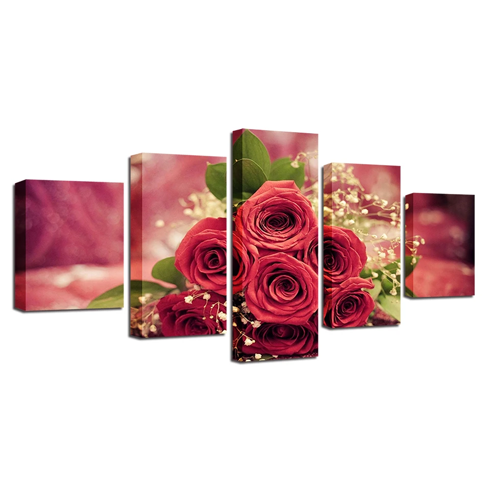 HD Печать на холсте искусство живопись для Гостиная Настенный декор, 5 комплектовпартия, закат романтический цветок розы фото Флора