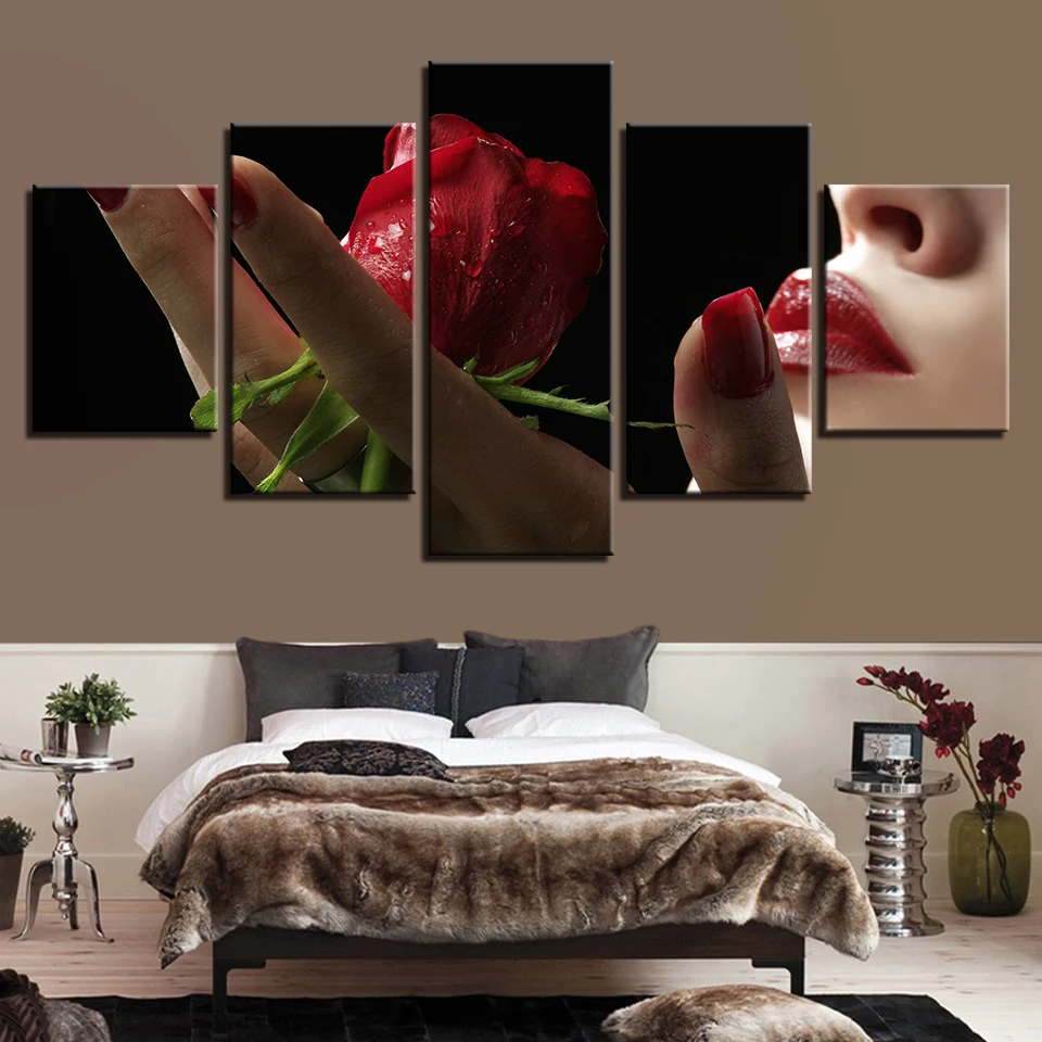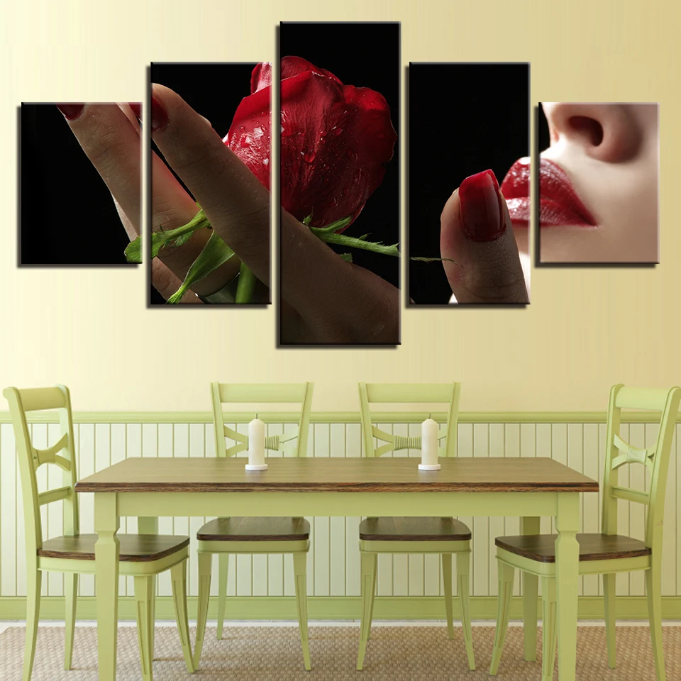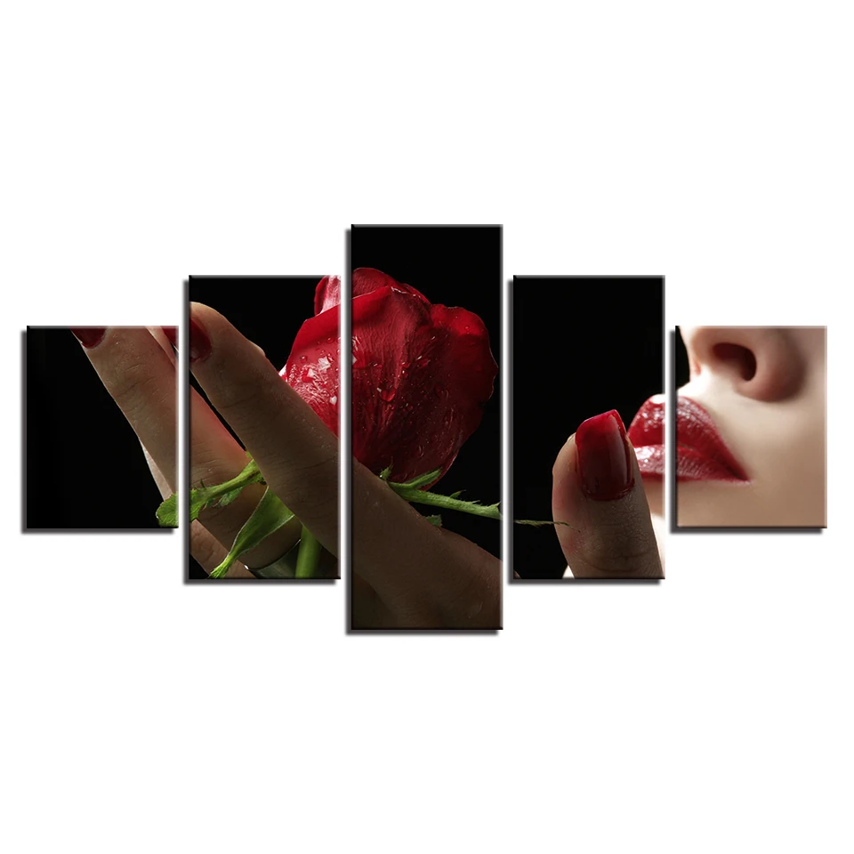 HD Картина на холсте для гостиной, Настенный декор, 5 шт., романтичная красная губа и Роза, картина с цветами