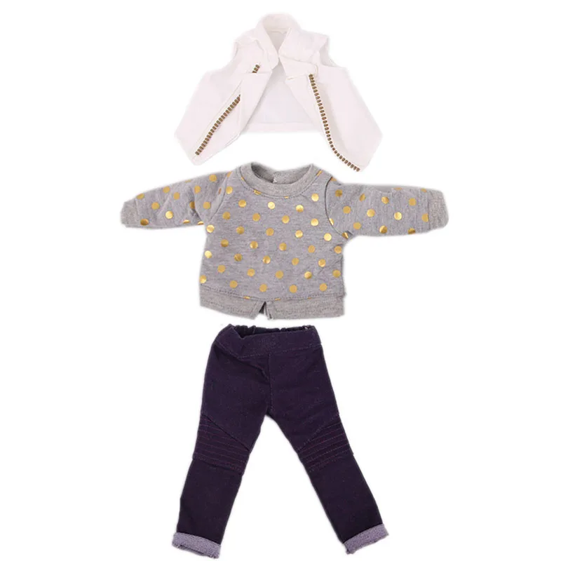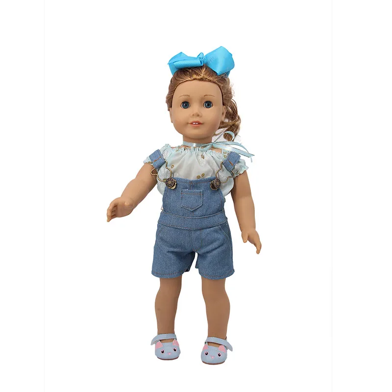 Одежда для кукол, джинсовый костюм с ремешком и принтом, подходит для кукол реборн 18 дюймов в американском стиле и 43 см, аксессуары для новорожденных, подарки для девочек