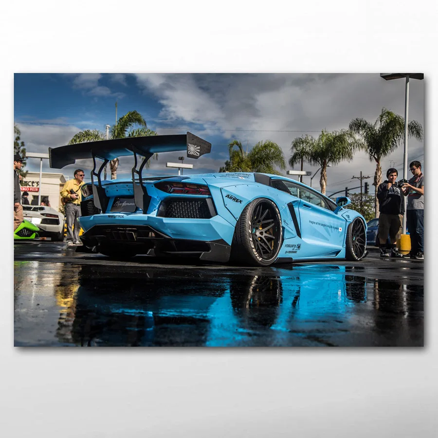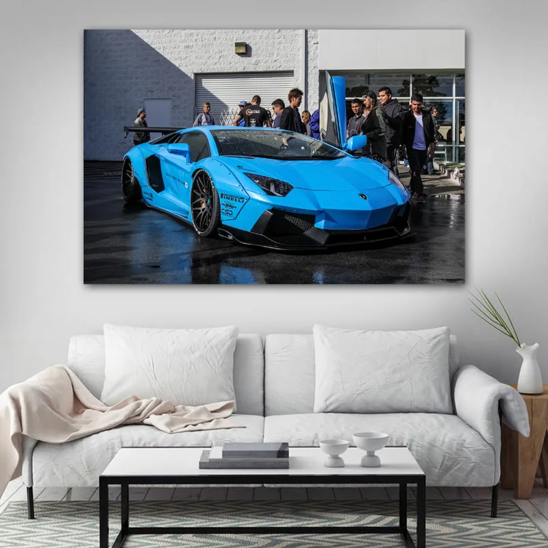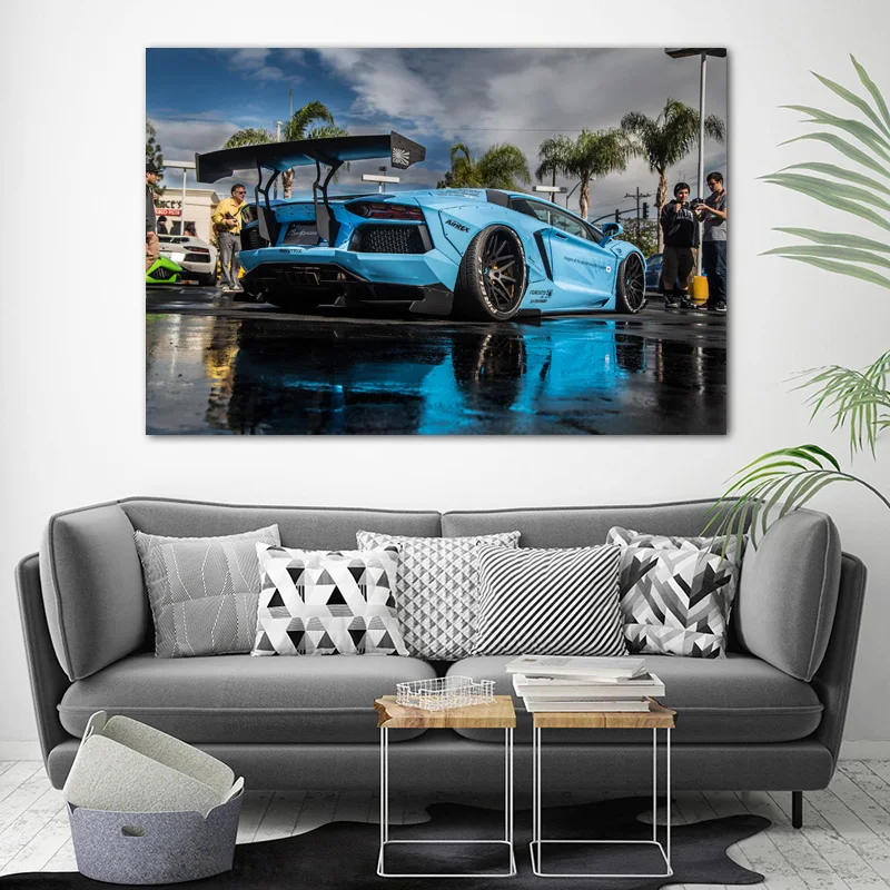 Картины на холсте, синий автомобиль, автомобиль, спортивный автомобиль, задний вид, фотообои для гостиной, Декор