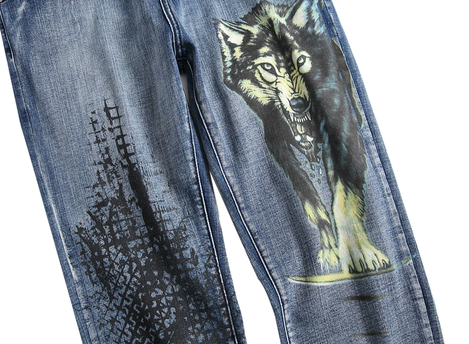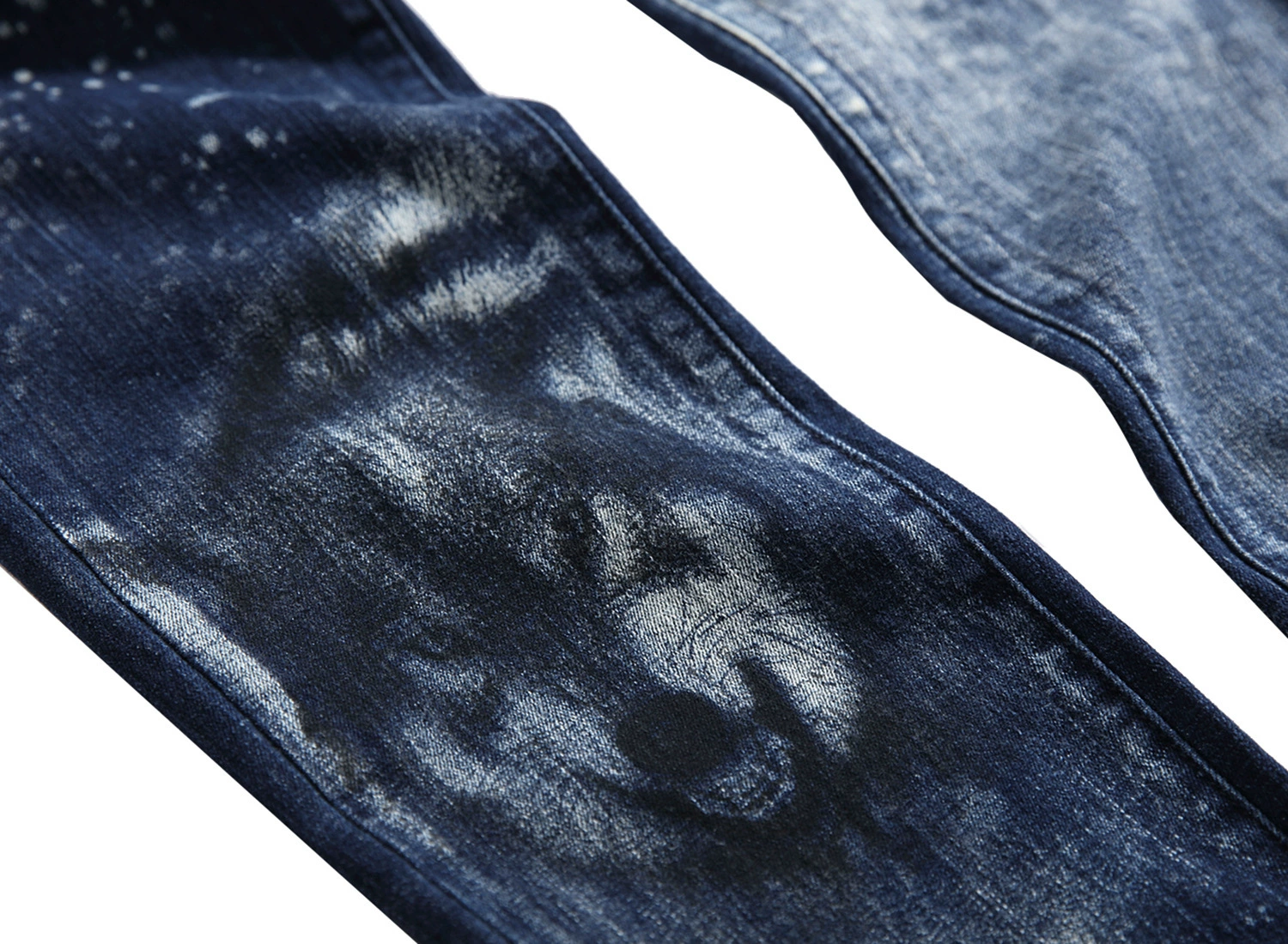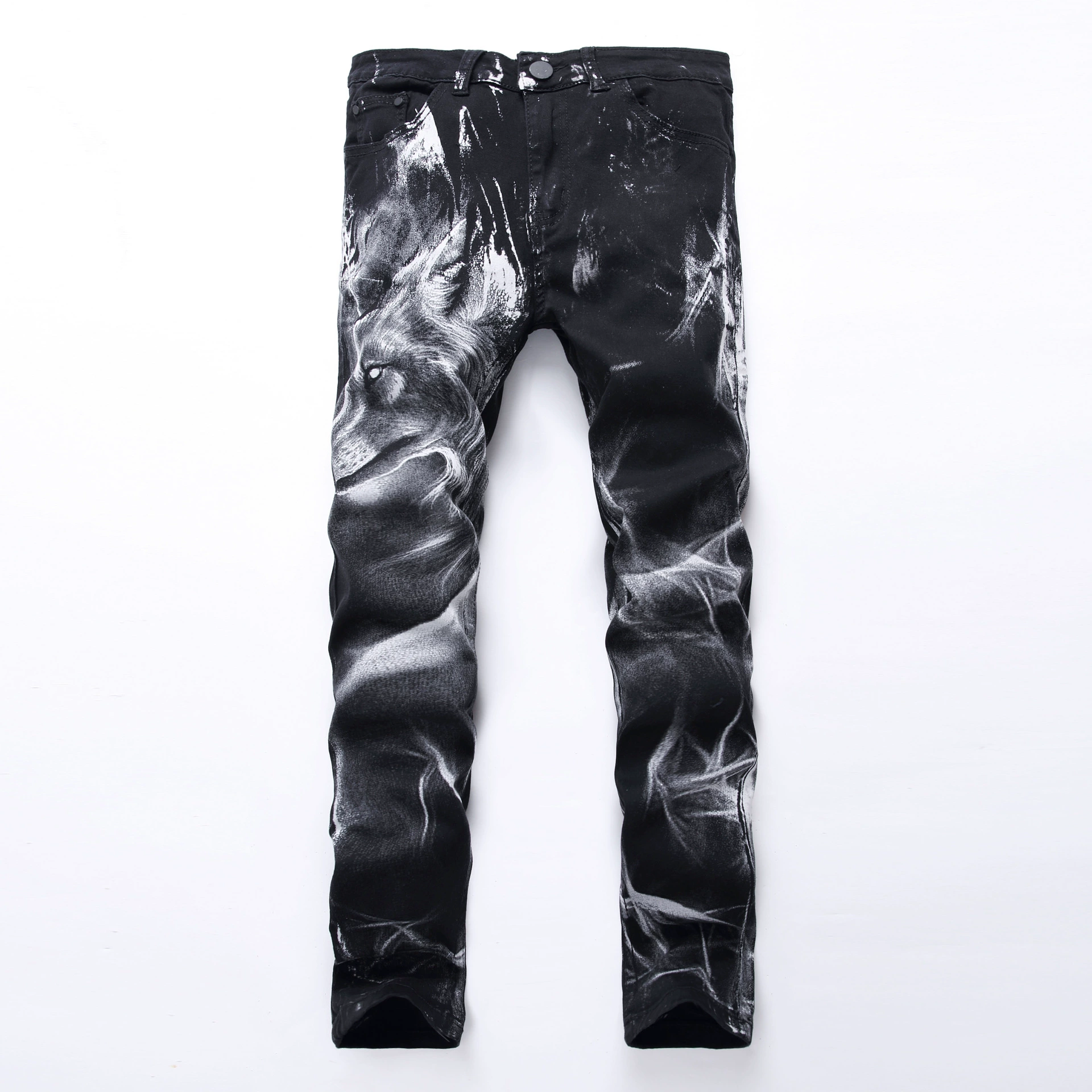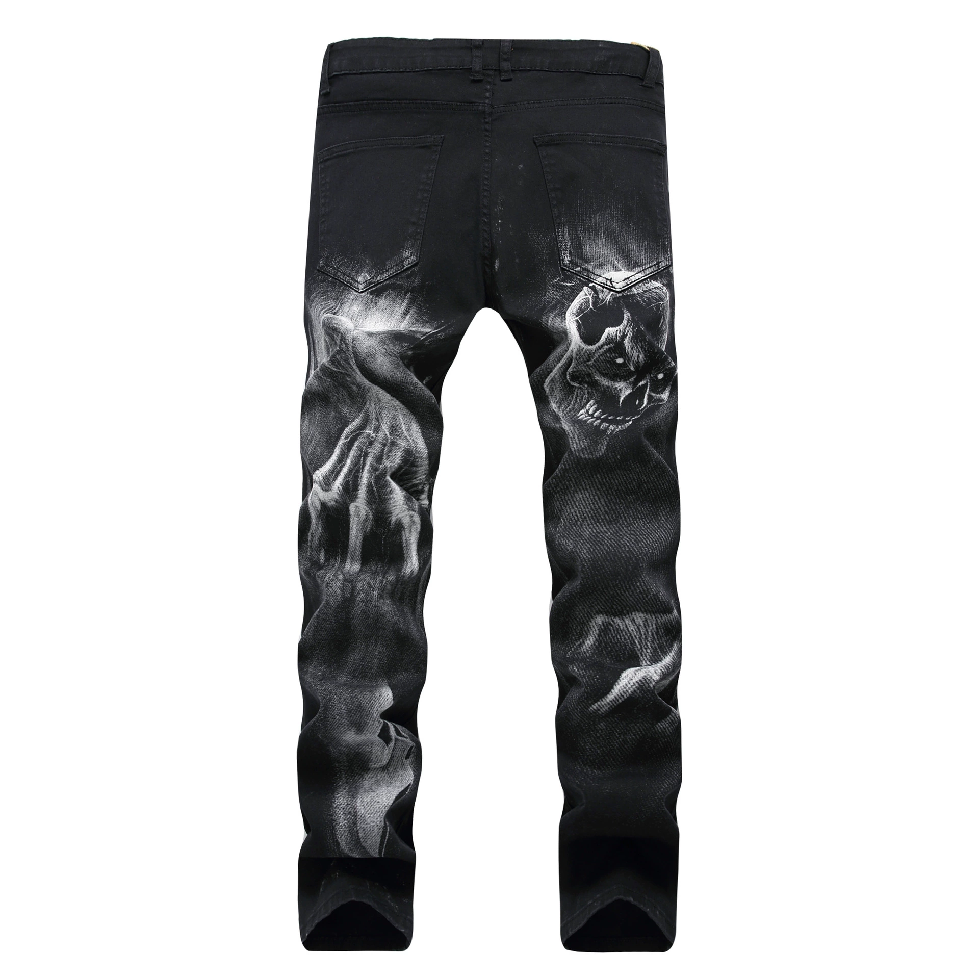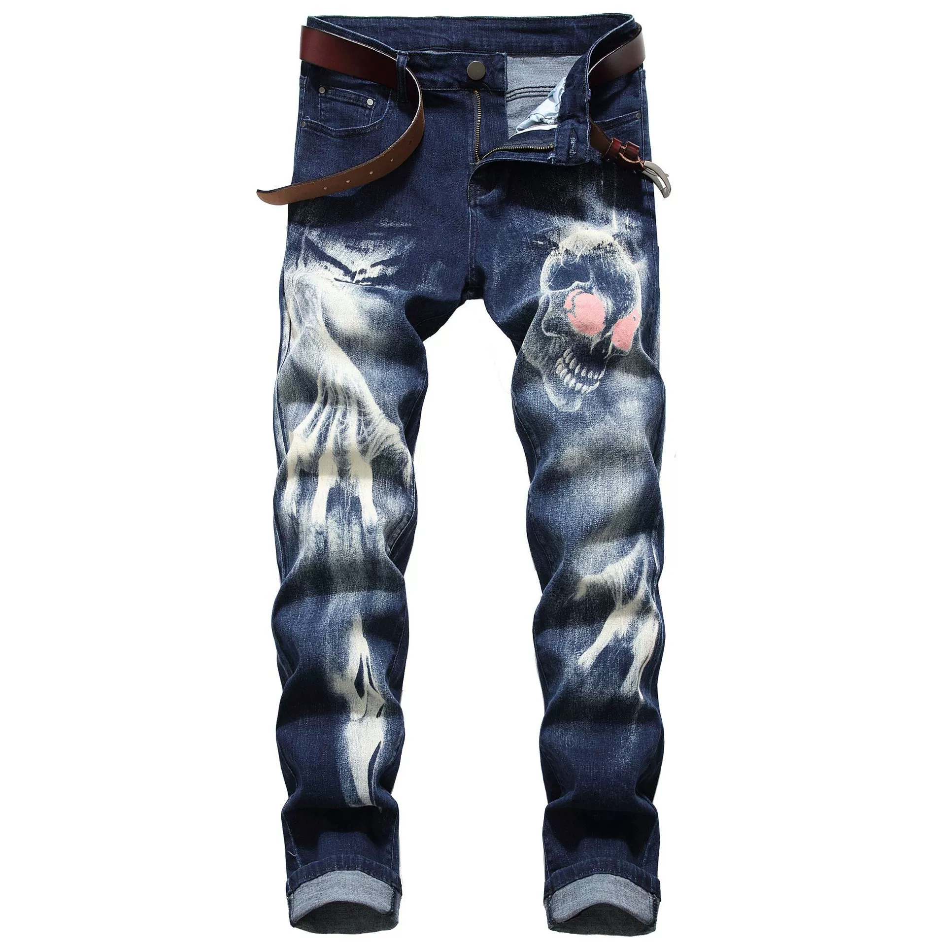 Модные мужские джинсовые брюки с 3D-принтом черепа волка, Длинные Классические облегающие джинсовые брюки, Мужская Уличная одежда, мужские эластичные джинсы