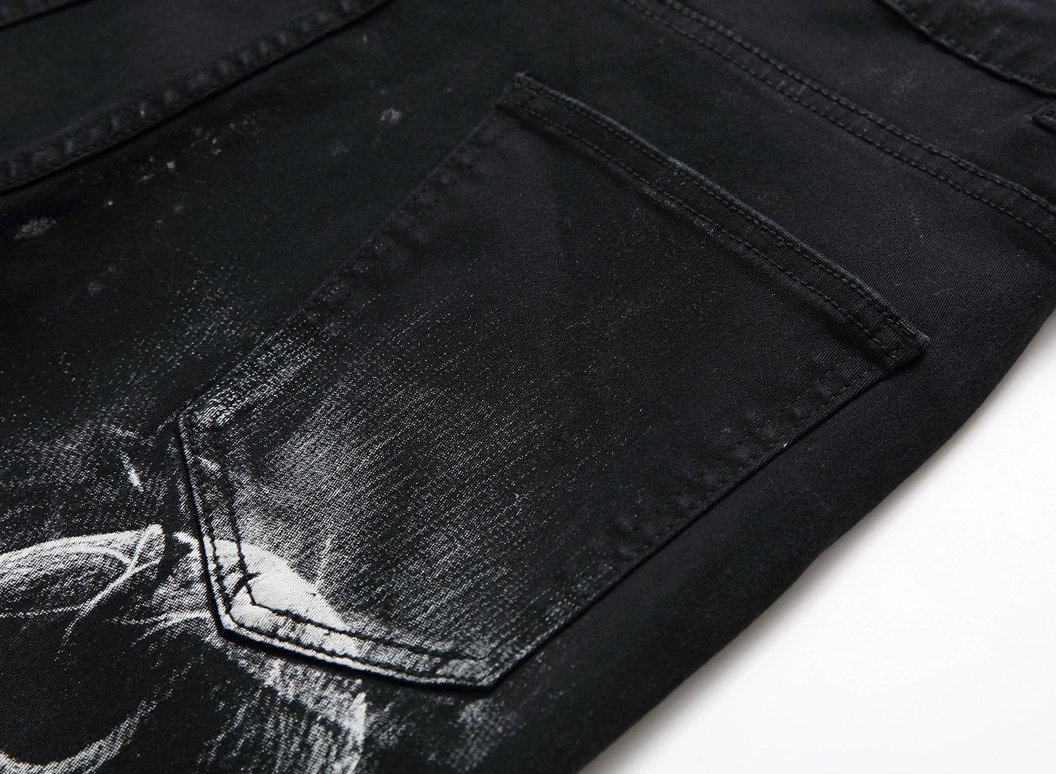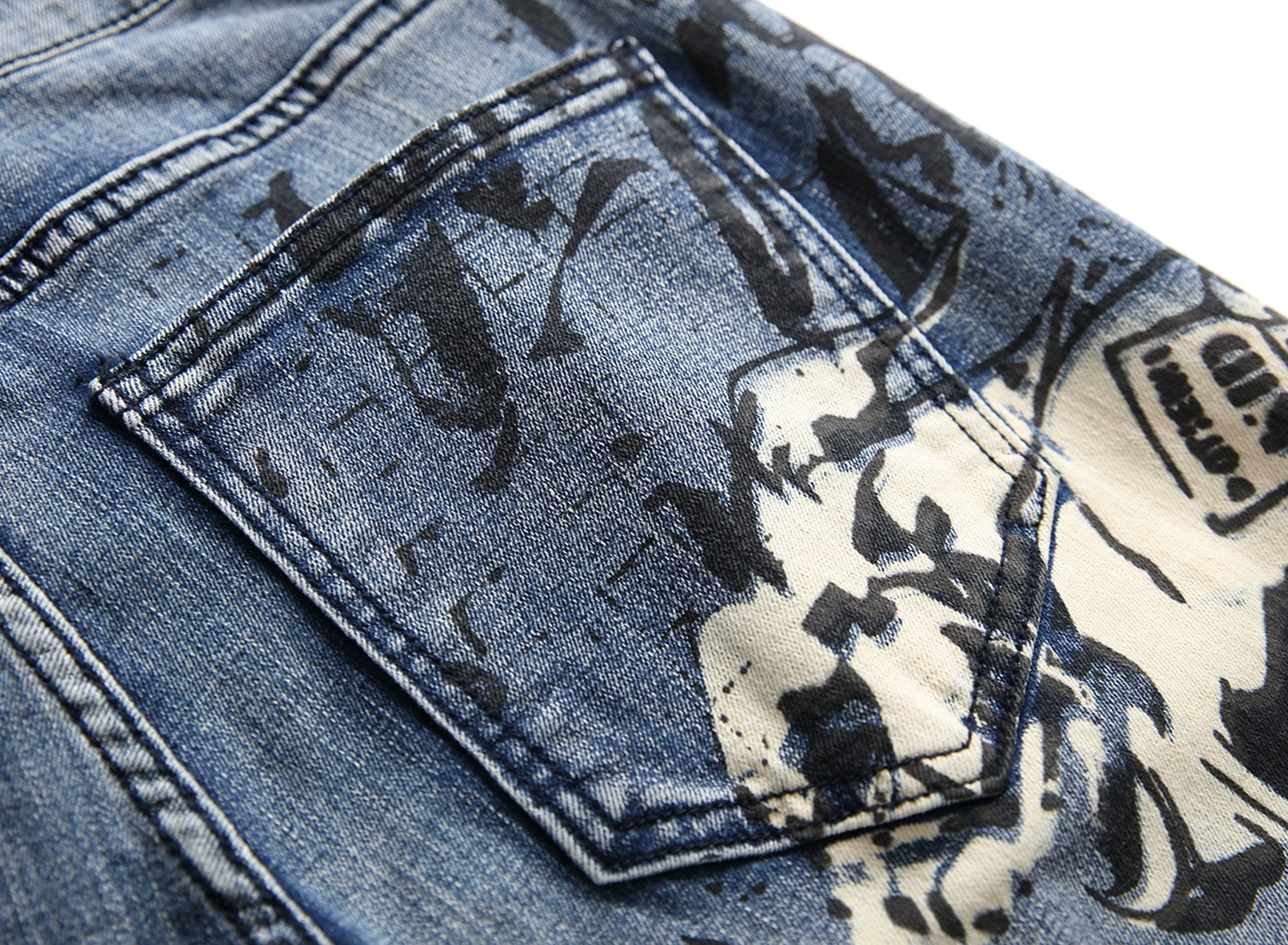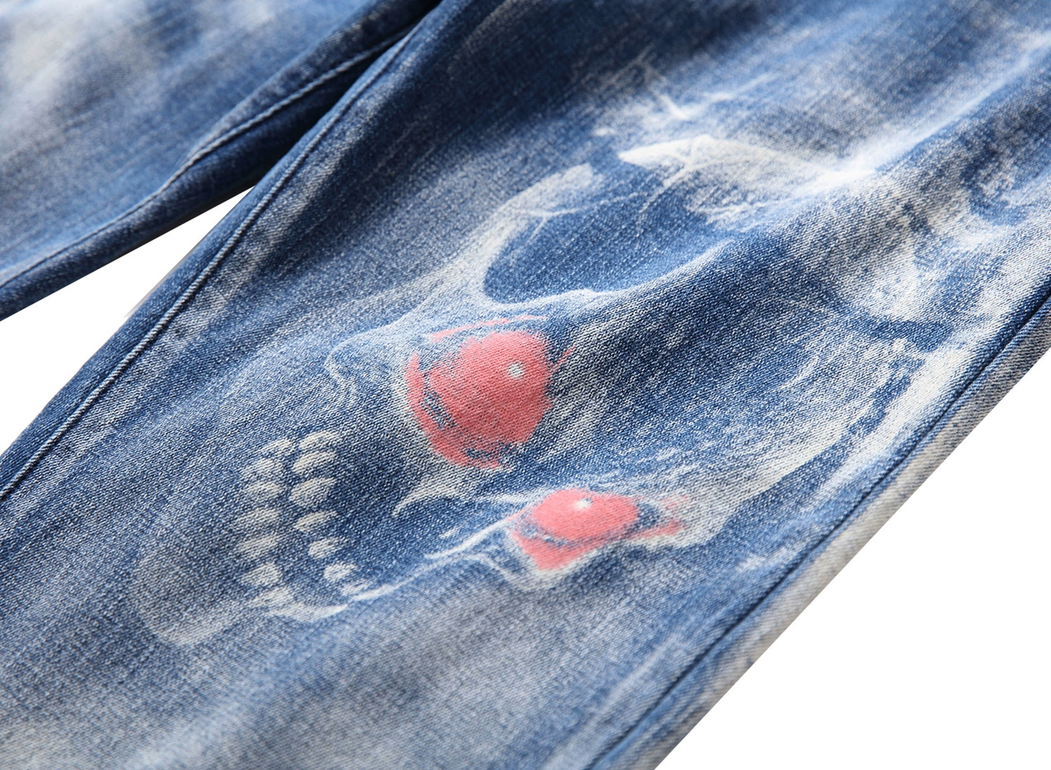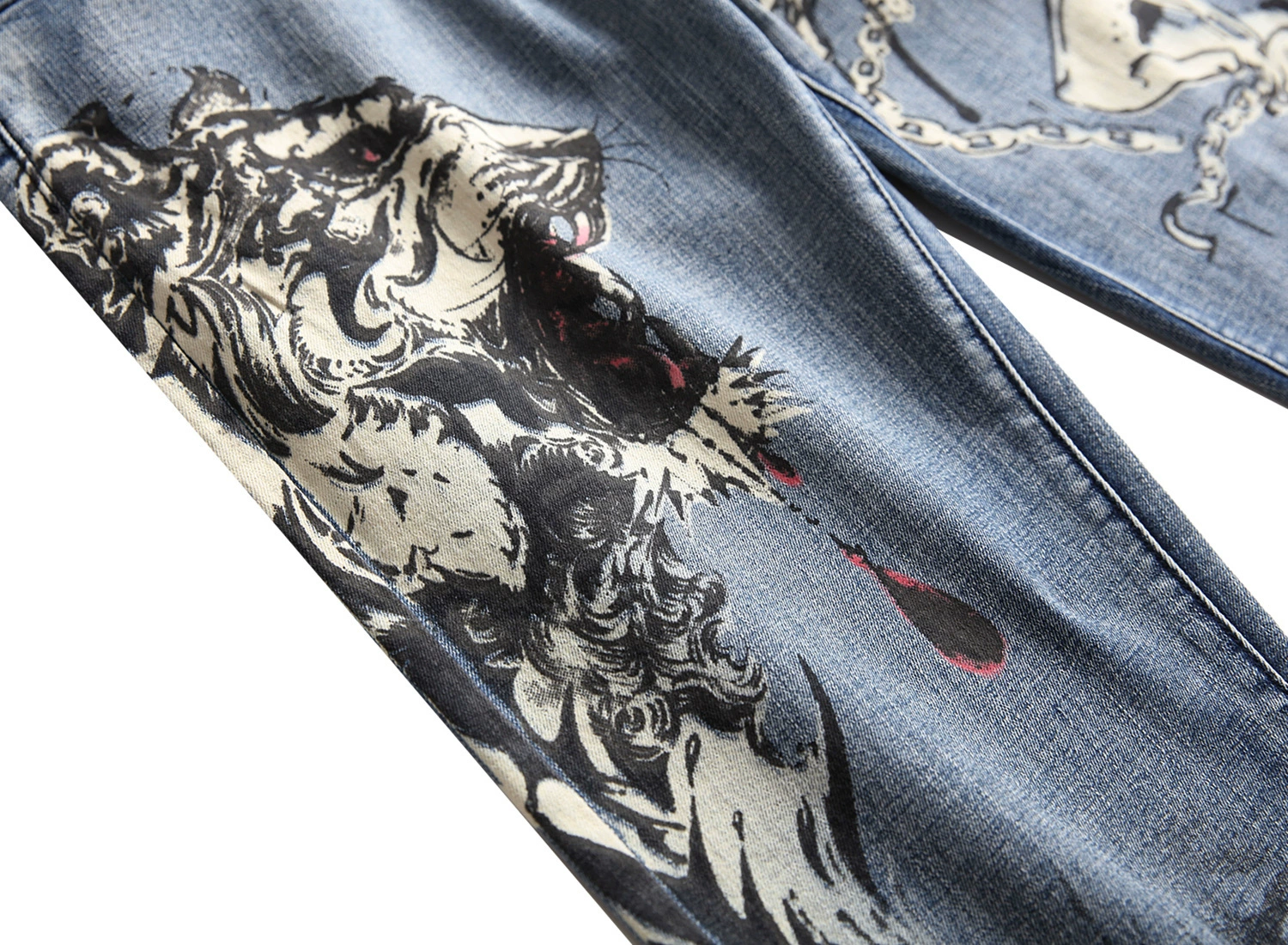 Модные мужские джинсовые брюки с 3D-принтом черепа волка, Длинные Классические облегающие джинсовые брюки, Мужская Уличная одежда, мужские эластичные джинсы