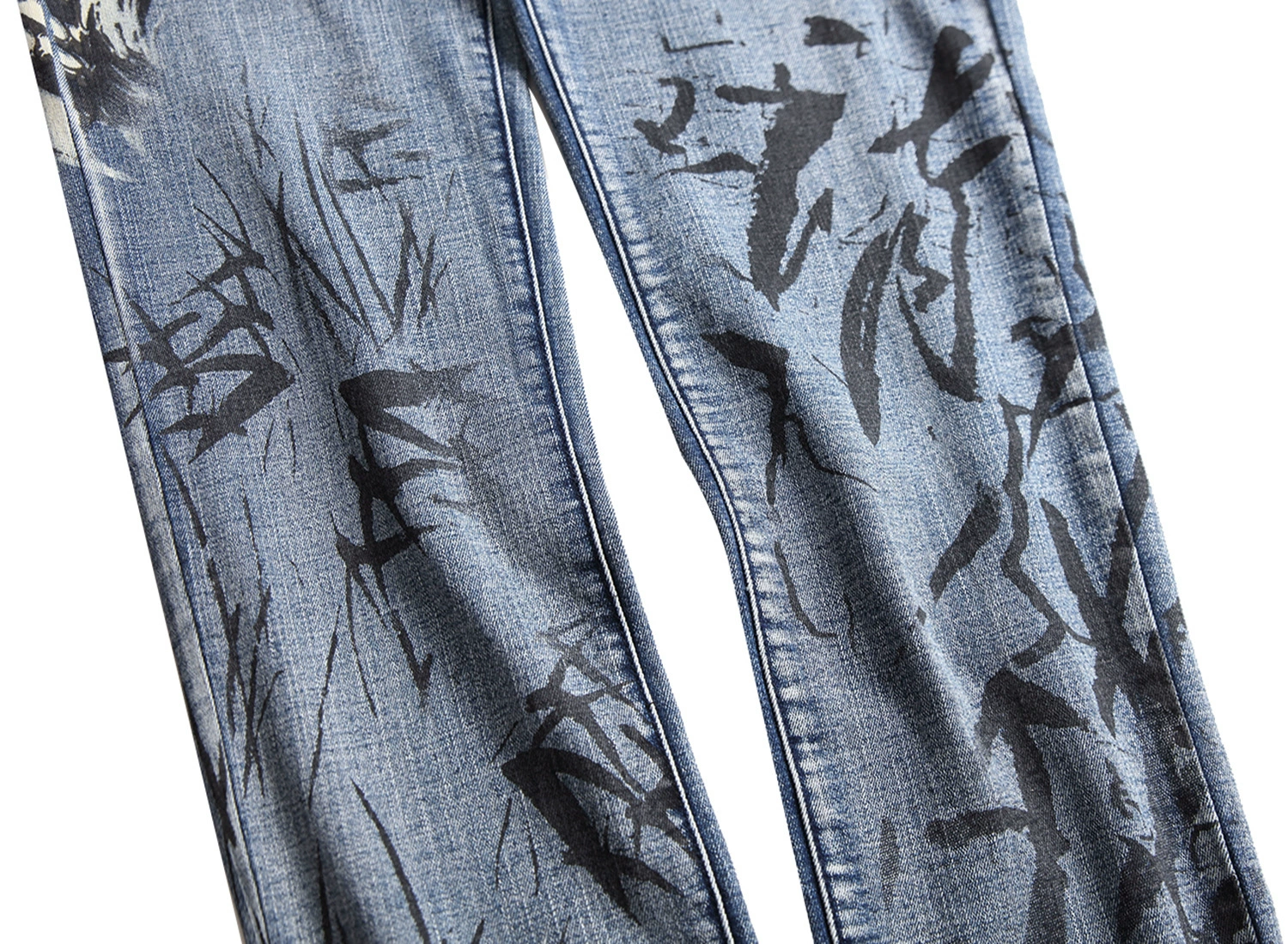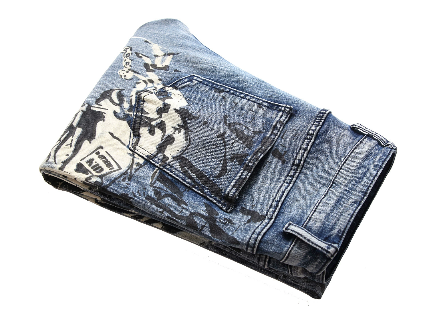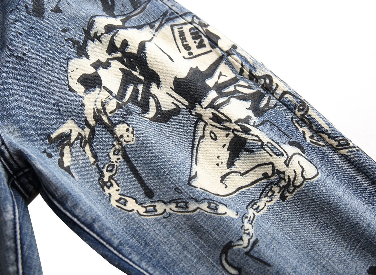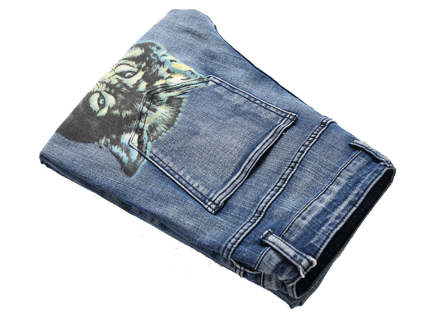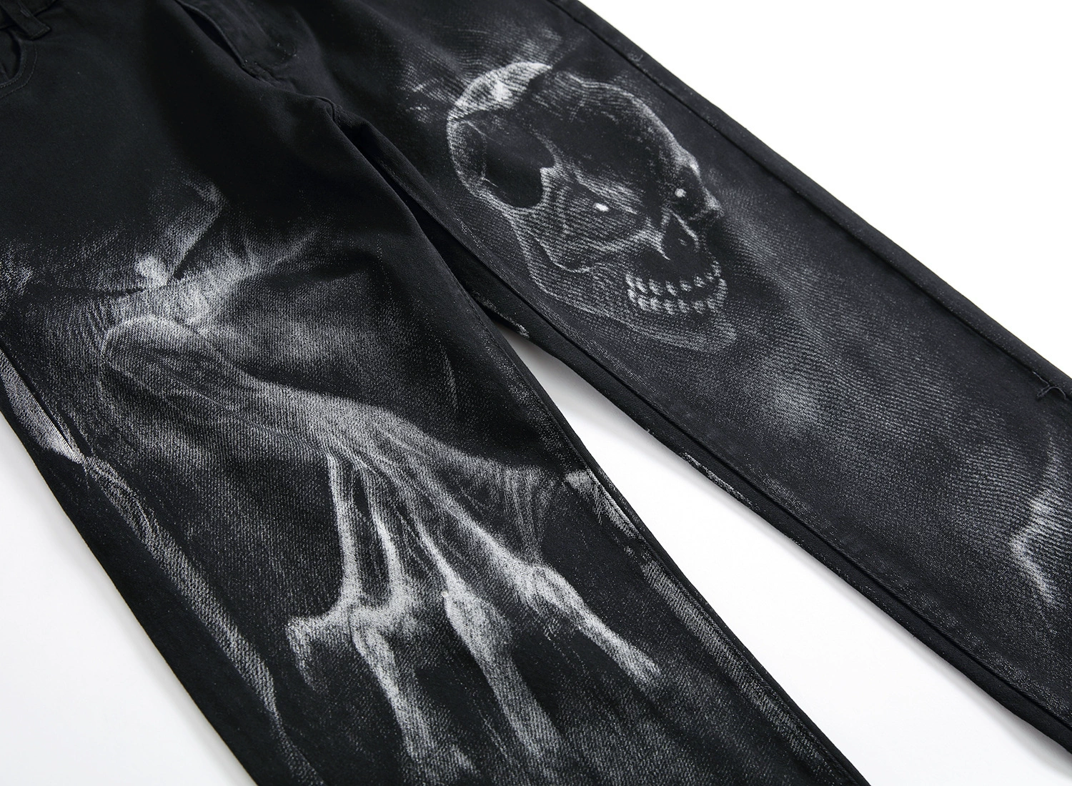 Модные мужские джинсовые брюки с 3D-принтом черепа волка, Длинные Классические облегающие джинсовые брюки, Мужская Уличная одежда, мужские эластичные джинсы