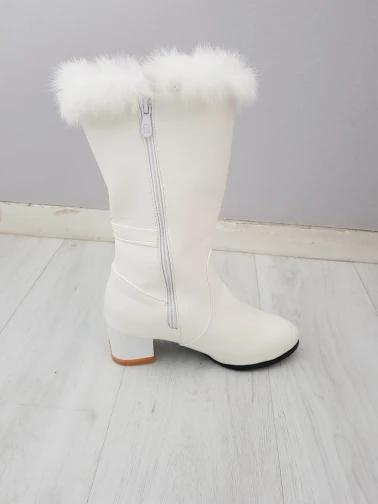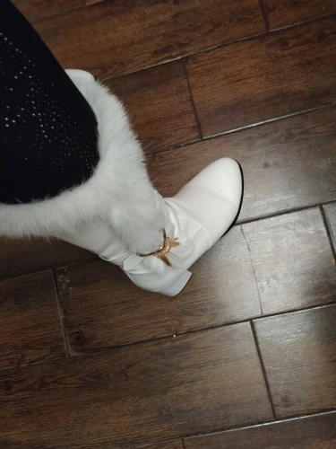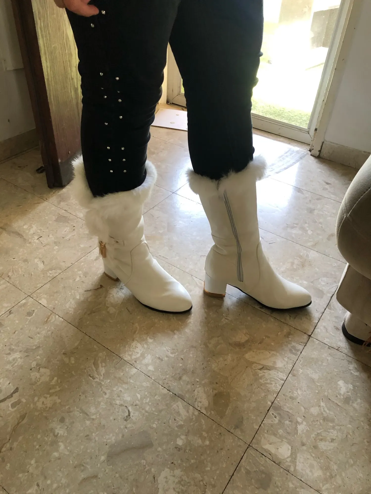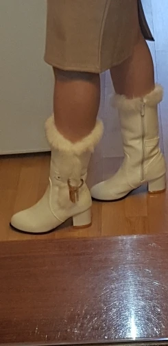 белые сапожки - не замшевые. по нашей слякоти это и прекрасно! сначала показалось, что один из каблуков заваливает ногу набок, но после 5 минут разгуливаний по квартире вроде это ощущение прошло и стало удобно! очень здорово смотрятся!