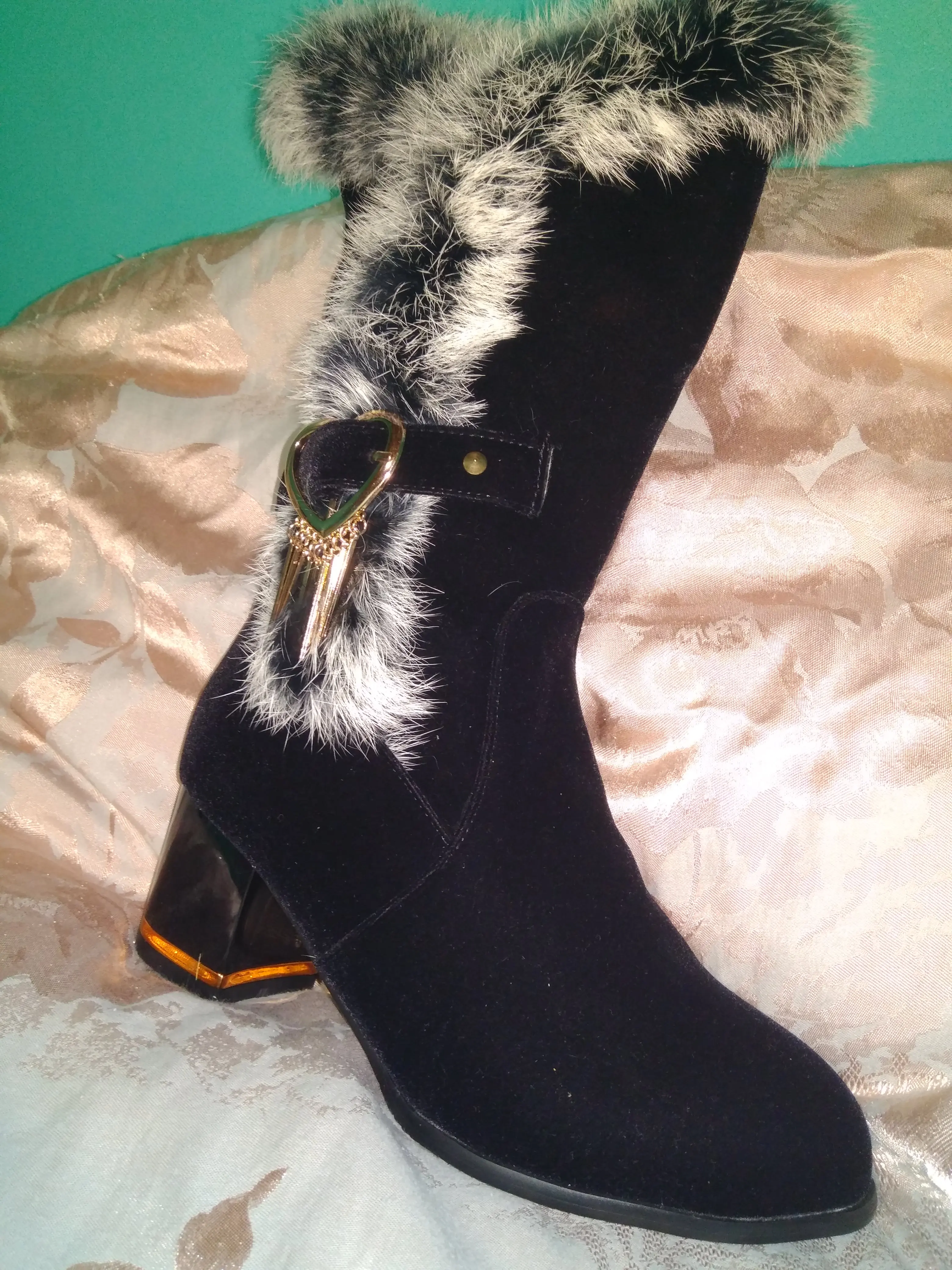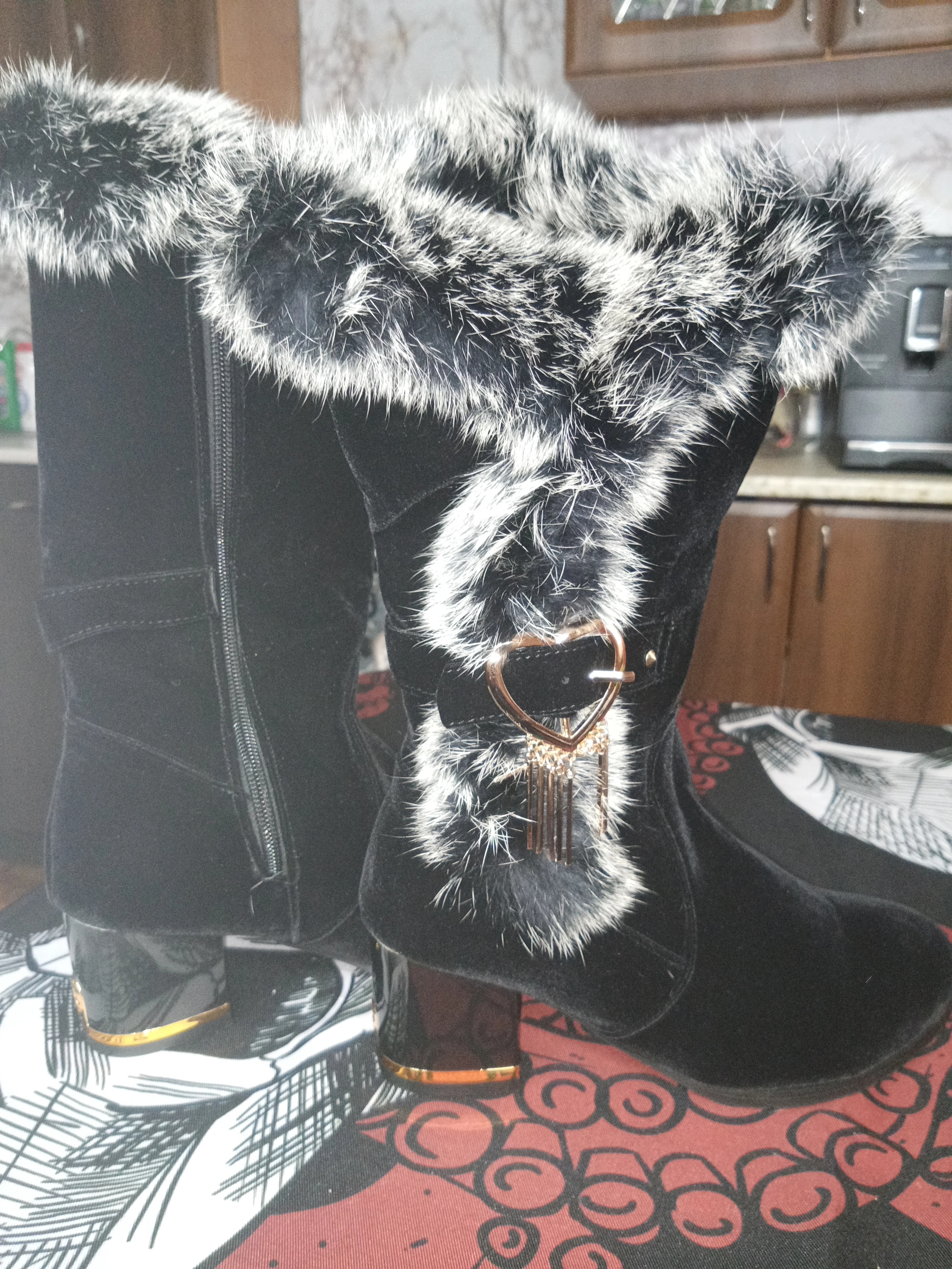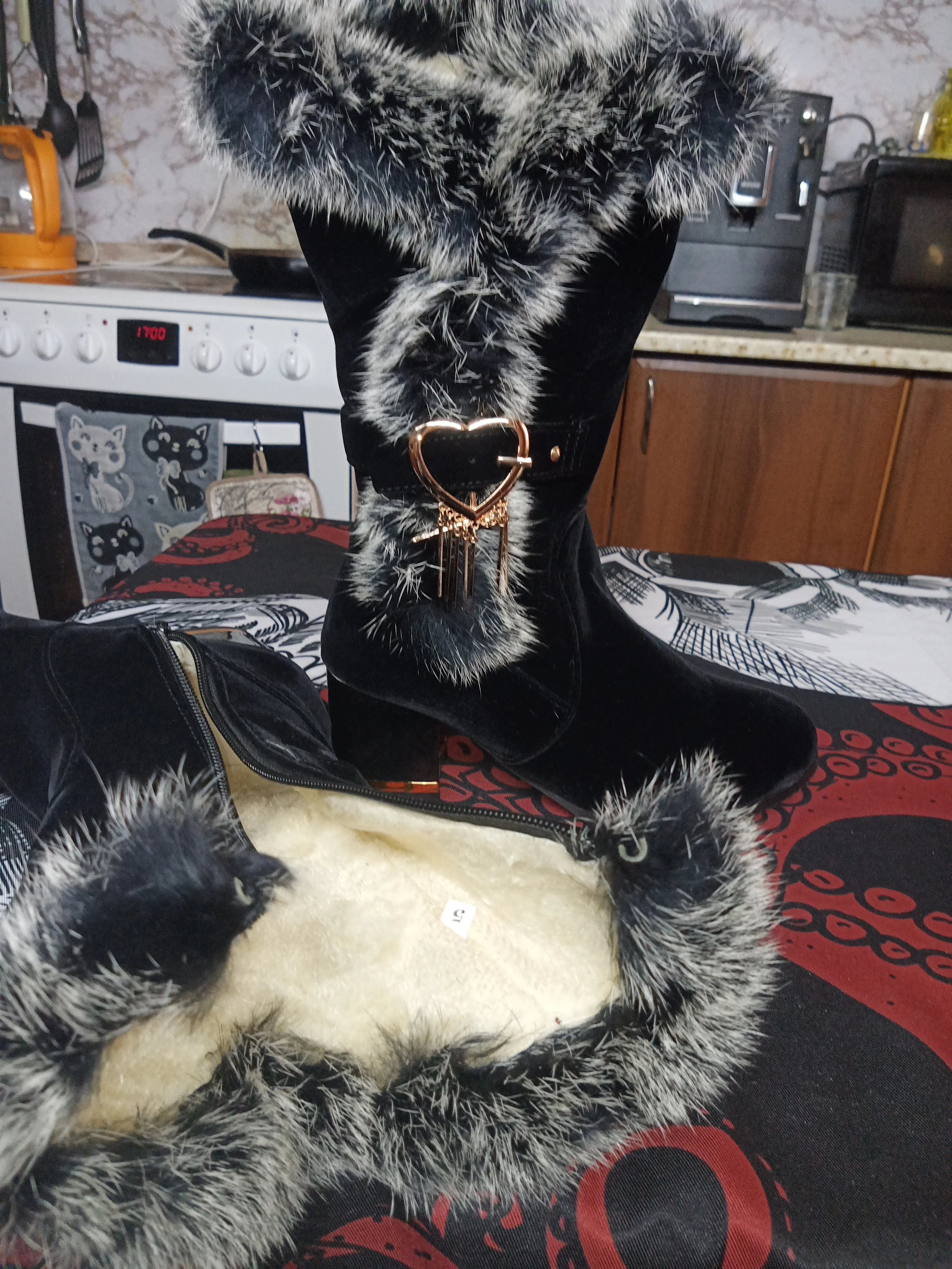 фуфло. верх из плательного бархата. ткань тонкая, синтетика, мех лезет. колодка не фабричная, тонкая подкладка, которая вот вот расползется, воняют клеем невыносимо... выброшены деньги. даже не знаю в какое время года и куда их носить. 2500р на помойку