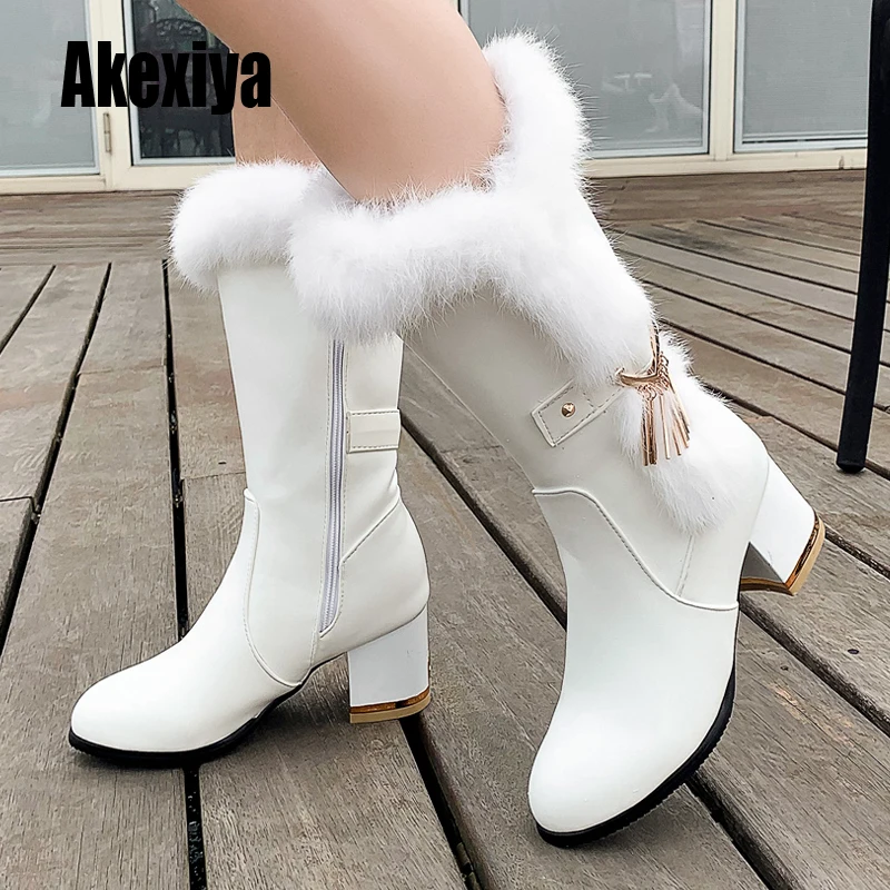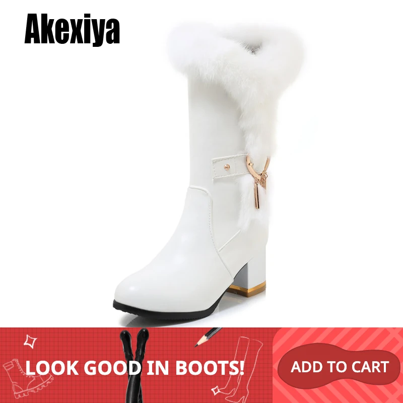 Новые зимние длинные женские сапоги, Водонепроницаемые кожаные сапоги с металлическим украшением и круглым носком, на меху, на высоком каблуке, размеры 34-43, K663