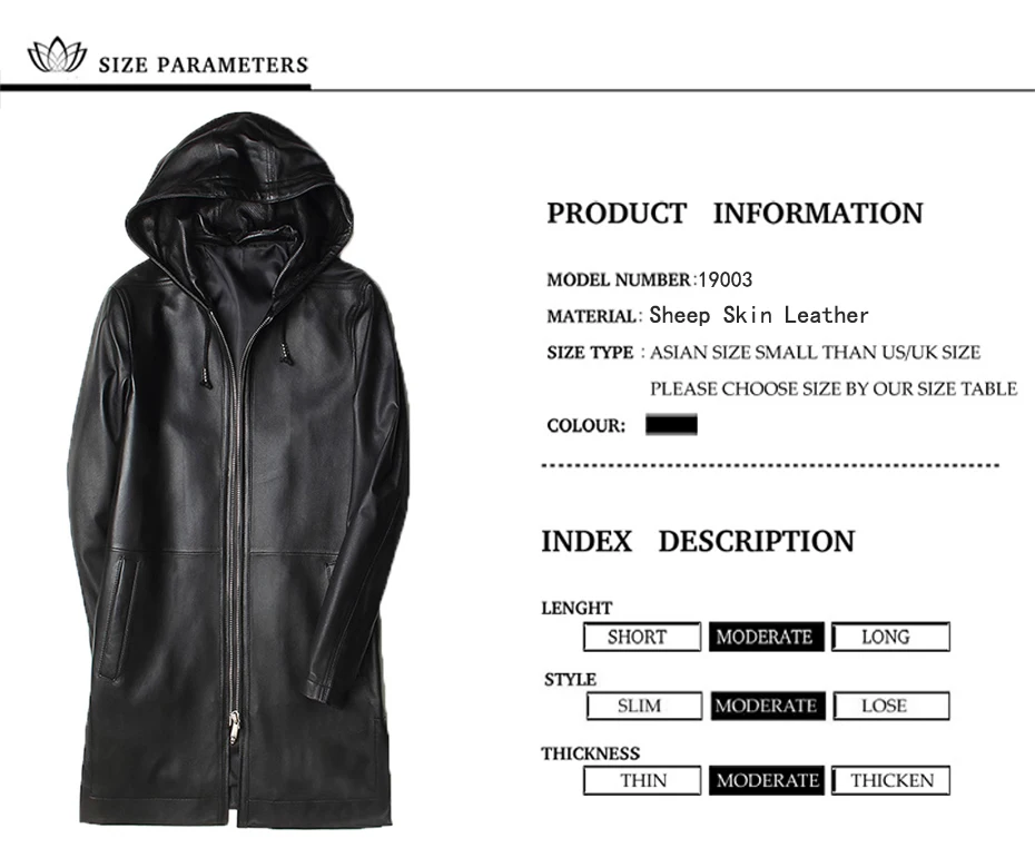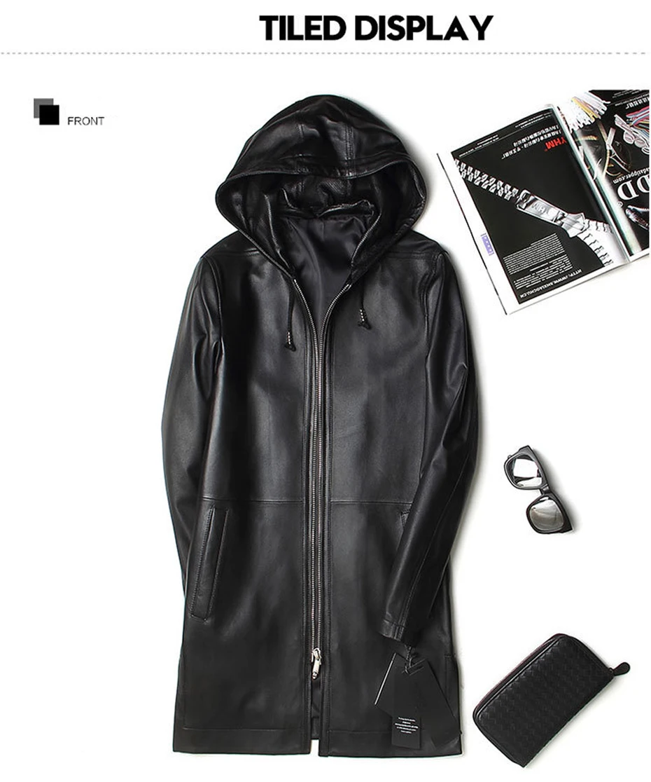 Пальто мужское из овечьей кожи, с капюшоном, весна-осень, 19003-5