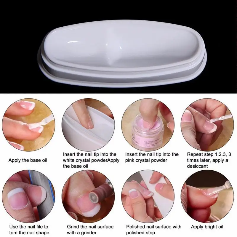 Белый порошок для ногтей Французский лоток ПВХ форма для маникюра погружной контейнер для ногтей инструменты для ногтей