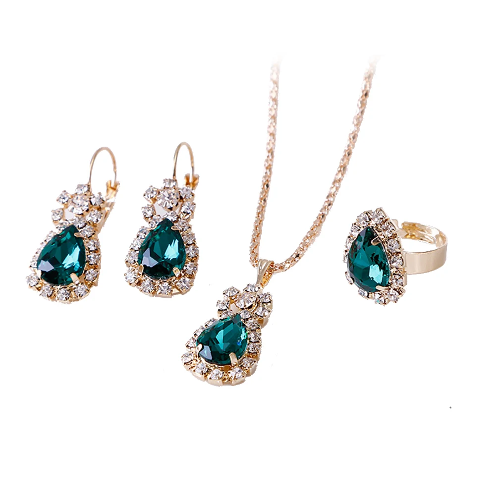 Модные блестящие стразы в форме капли воды, ожерелье, кольцо, серьги, женский ювелирный набор