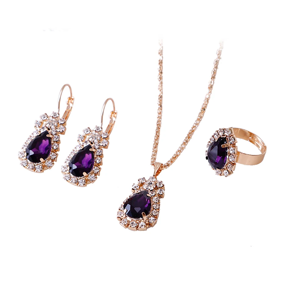 Модные блестящие стразы с каплями, ожерелье, кольцо, серьги, женский ювелирный наборБижутерия комплекты